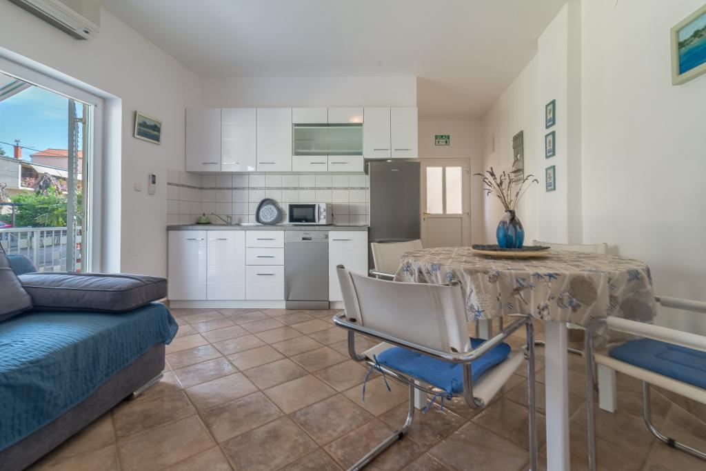 Dom apartamentowy Lucija położony w doskonałej lokalizacji przy cichej i spokojnej ulicy tylko 5 min. w odległości krótkiego spaceru od głównej plaży miejskiej Dražica, która została uznana za najlepiej wyposażoną plażę w Republice Chorwacji, a także wszystkich innych udogodnień niezbędnych do przyjemnego wypoczynku letniego, w które obfituje Biograd. W domu znajdują się 4 apartamenty, wszystkie o powierzchni 40m2, składające się z sypialni z łóżkiem małżeńskim, pokoju dziennego z rozkładaną sofą dla 2 osób, w pełni wyposażonej kuchni ze zmywarką, łazienki z prysznicem i toaleta, pralka i wejście. Mieszkania na I piętrze A-1 i A-2 posiadają duże tarasy o powierzchni 30 m2, zaś mieszkania na II piętrze A-3 i A-4 posiadają balkony o powierzchni 12 m2. Wszystkie apartamenty są doskonale wyposażone: klimatyzacja, WiFi, telewizja satelitarna, łóżka z materacami z pianki memory, kuchnie ze zmywarką, duże lodówki z zamrażarką, kuchenki mikrofalowe i ekspresy do kawy/herbaty oraz wszystko, czego potrzebujesz do przygotowywania i serwowania posiłków. Parking i letnia kuchnia z dużym grillem na podwórku.