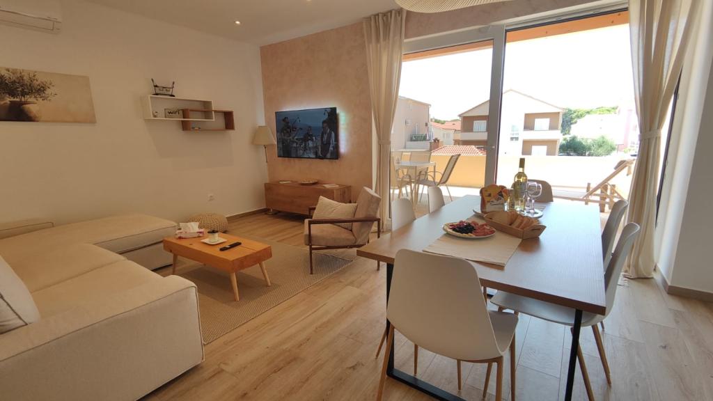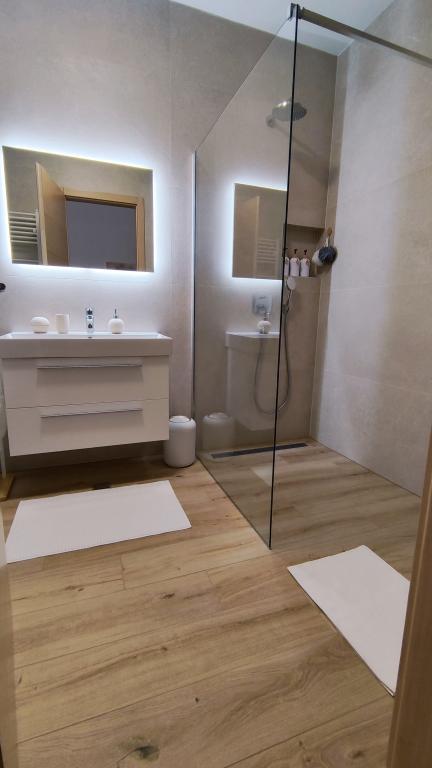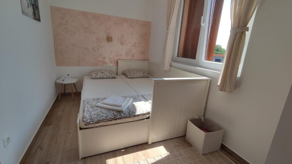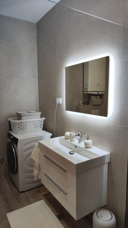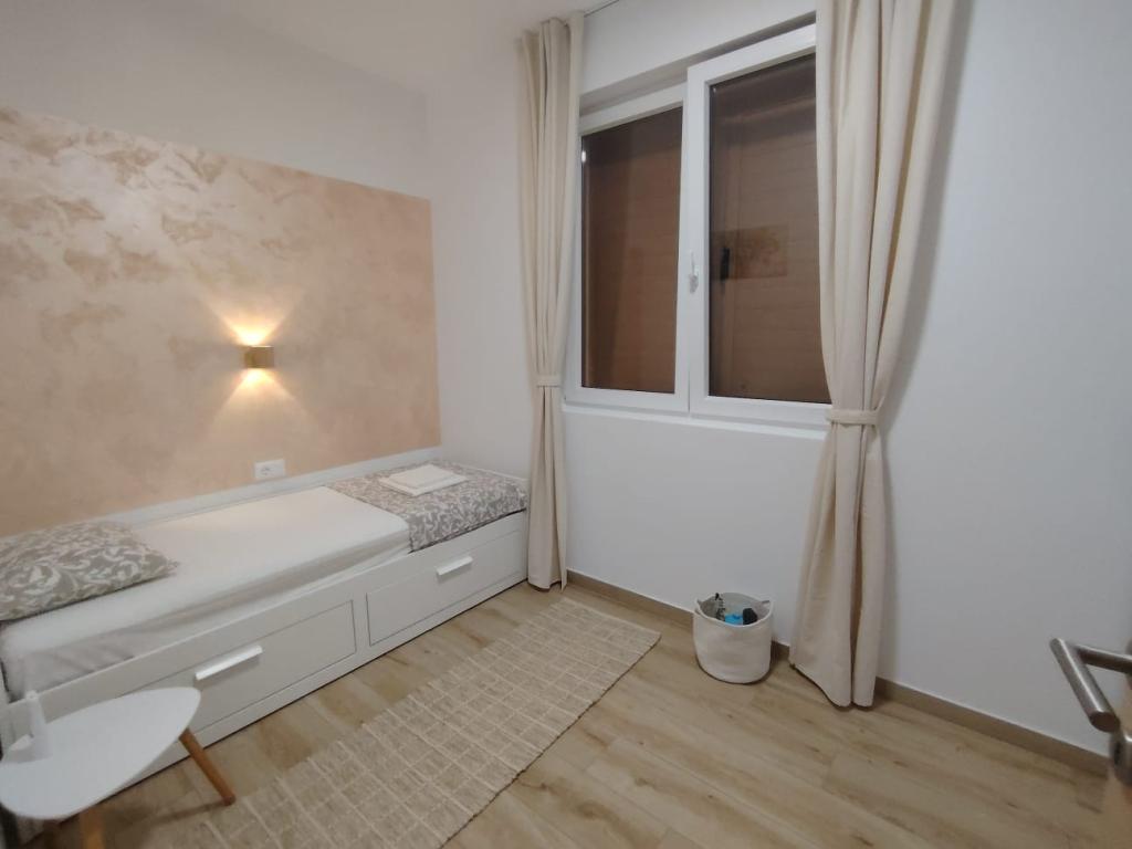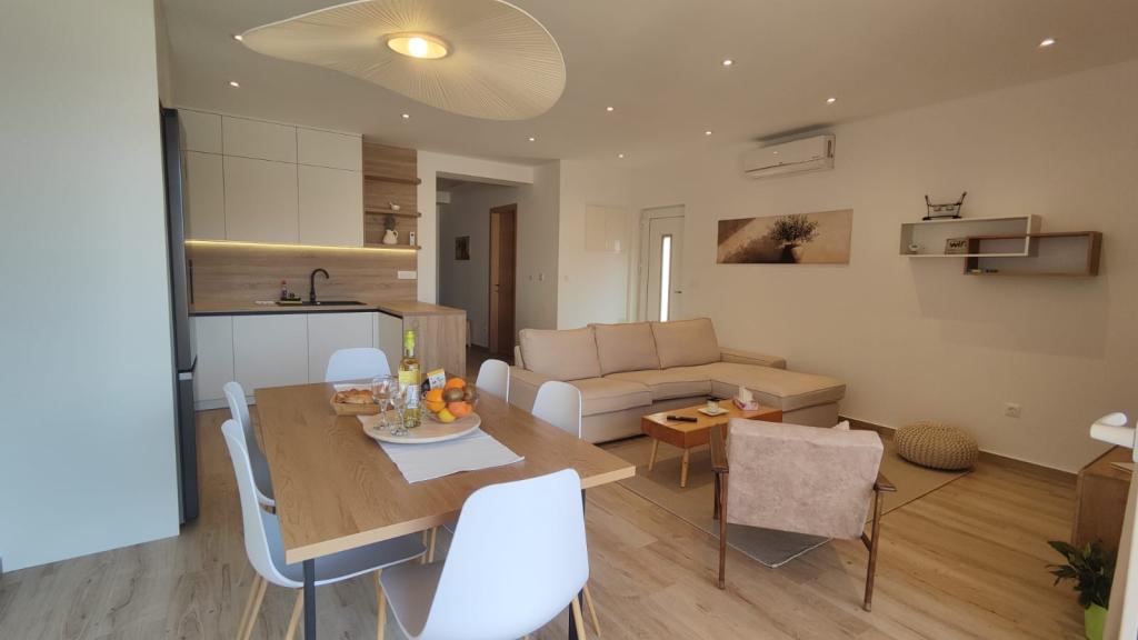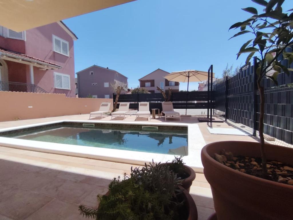 Nowo wybudowany, dwupiętrowy dom wakacyjny z basenem i dwoma oddzielnymi lokalami mieszkalnymi (parter i piętro). Każdy lokal mieszkalny o powierzchni 90 metrów kwadratowych składa się z 3 sypialni, kuchni, łazienki, tarasu i salonu. Do dyspozycji gości jest parking.
