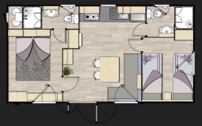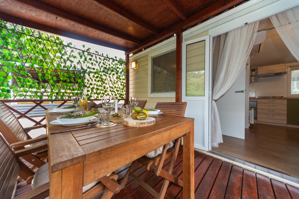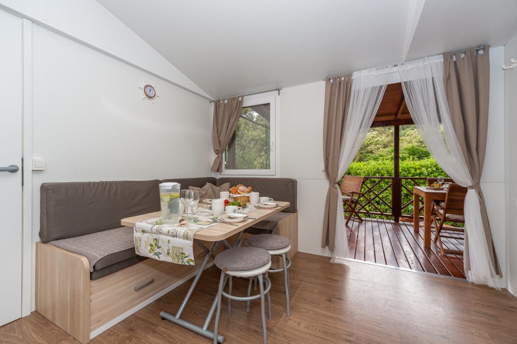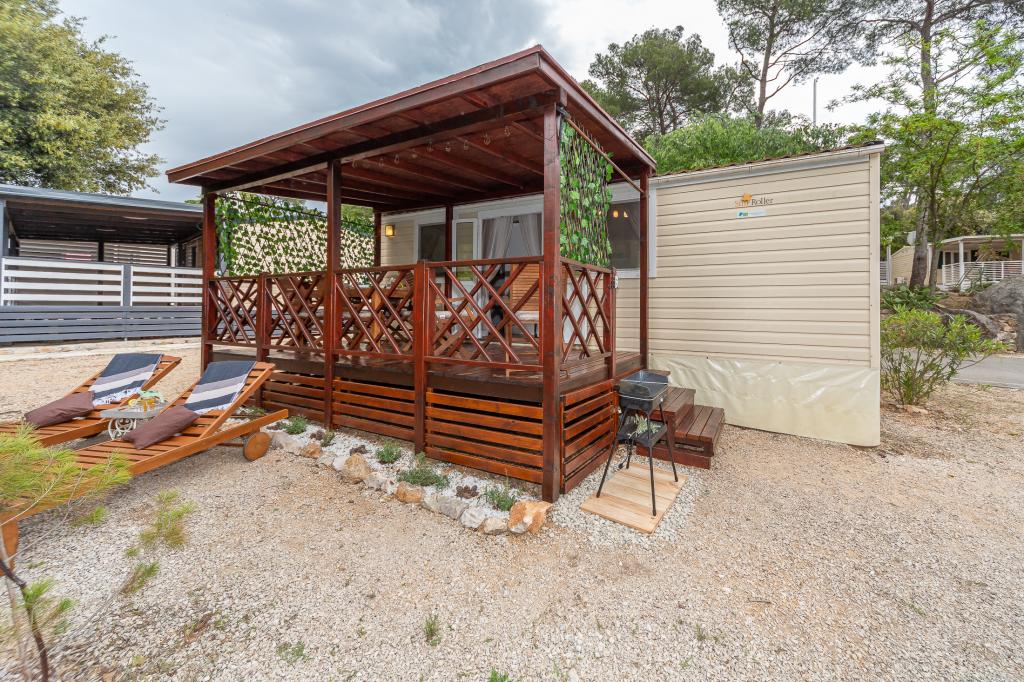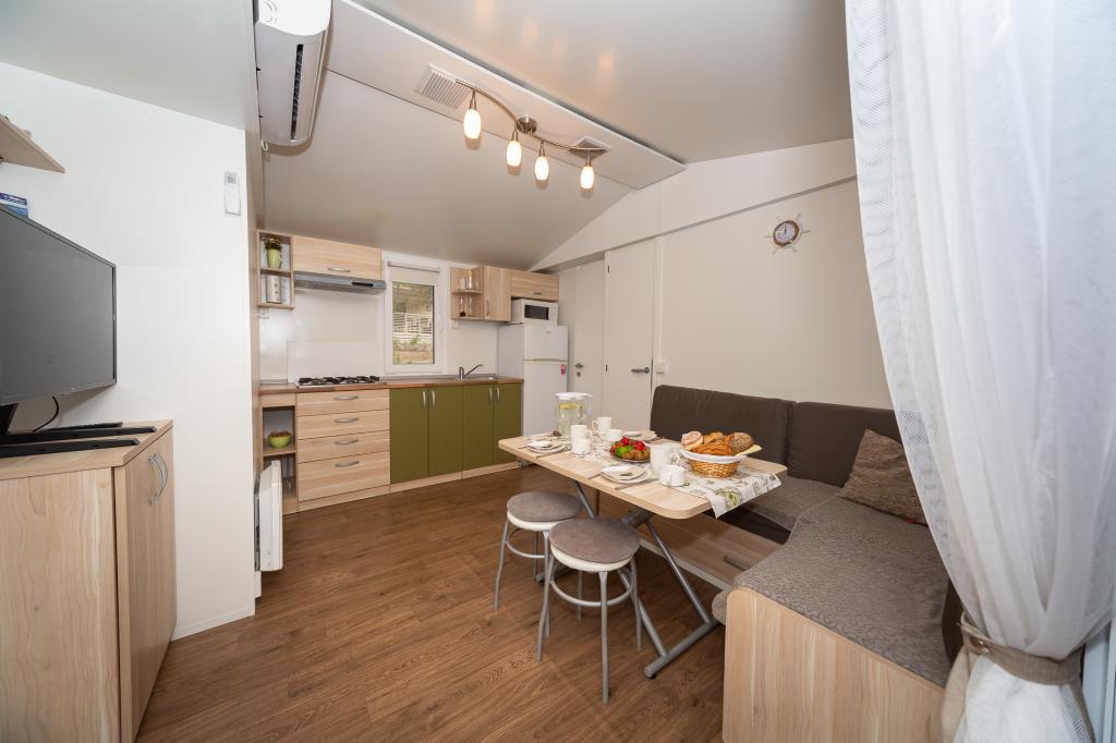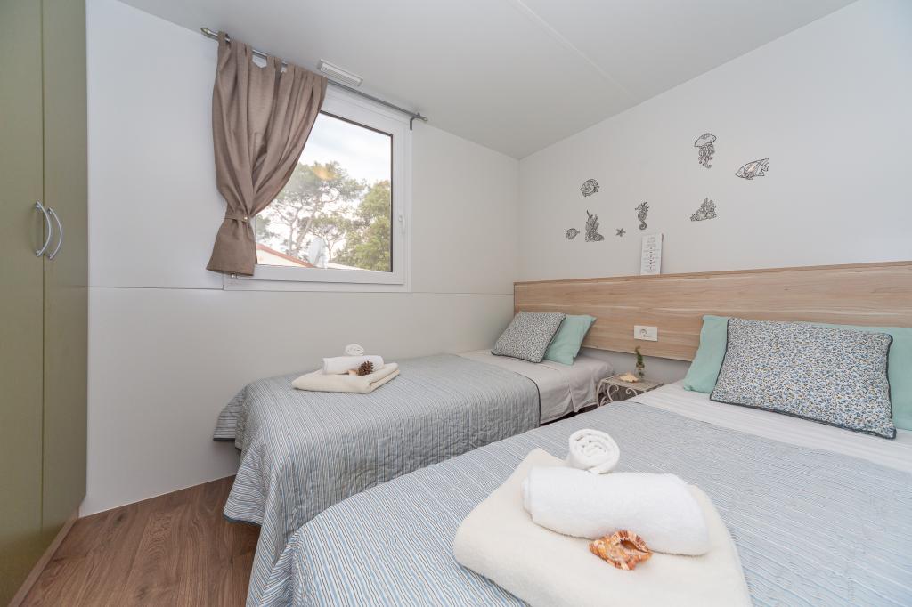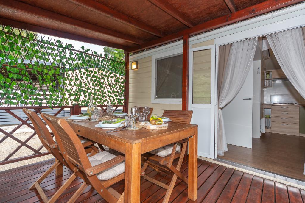 Mobile home Pine Adria znajduje się na kempingu Soline w Biograd na Moru. Dom jest w pełni i nowocześnie wyposażony, z pięknym tarasem na skraju lasu obozowego, w cichej okolicy. Obiekt znajduje się 5 minut spacerkiem do plaży.