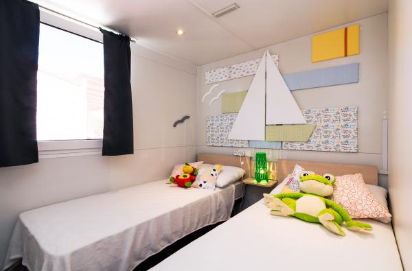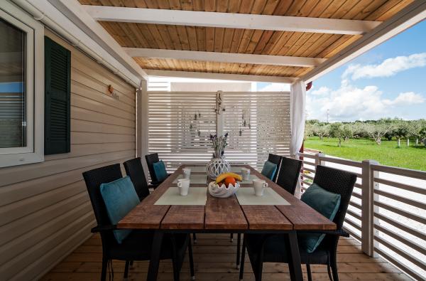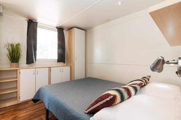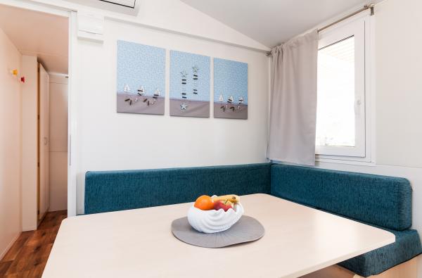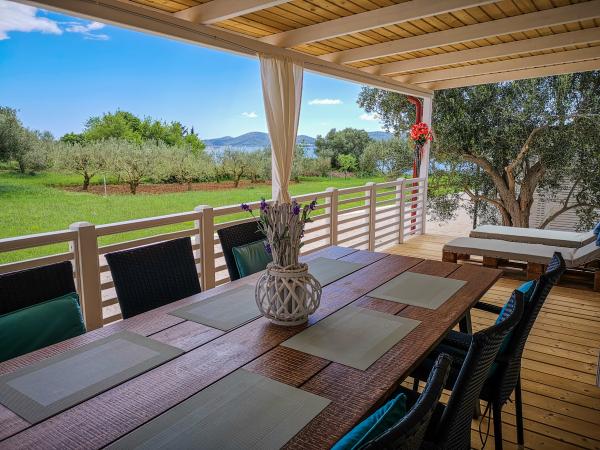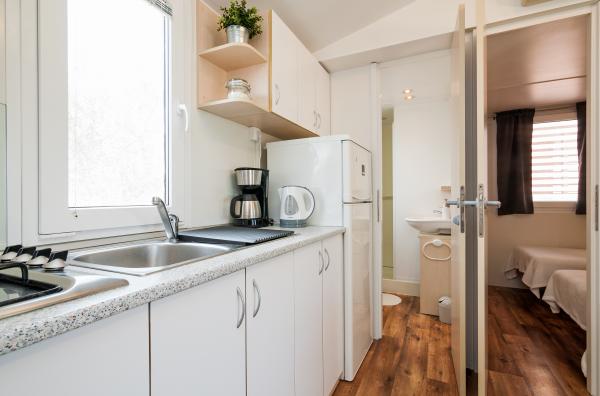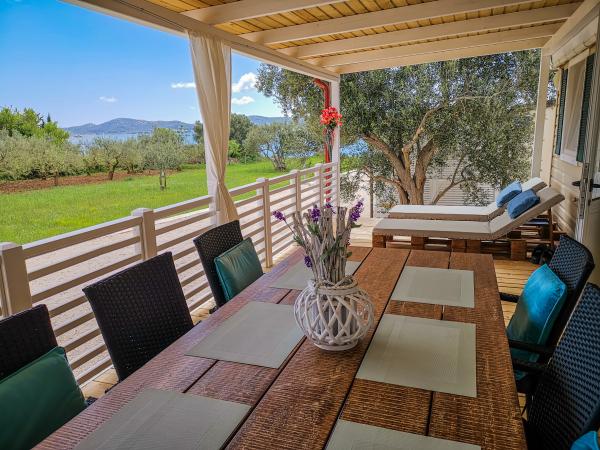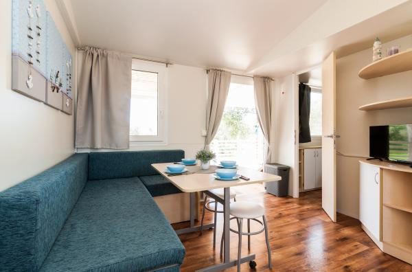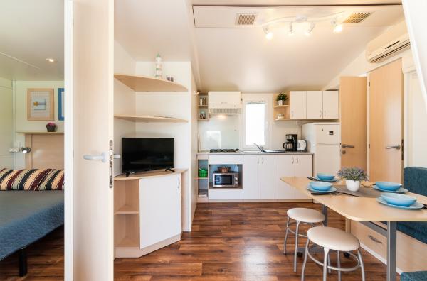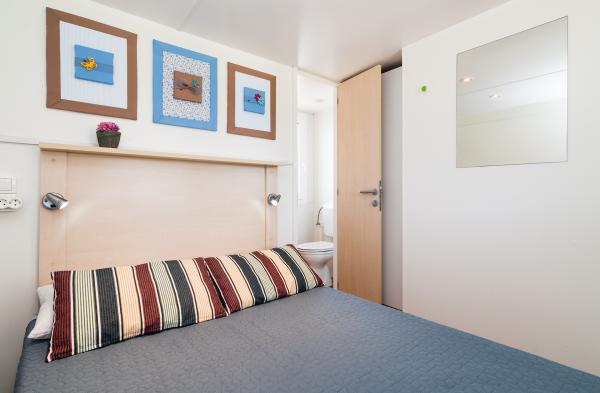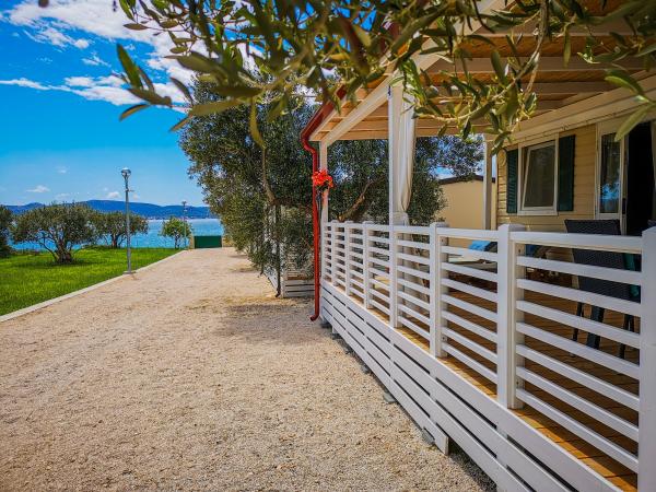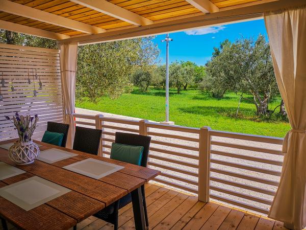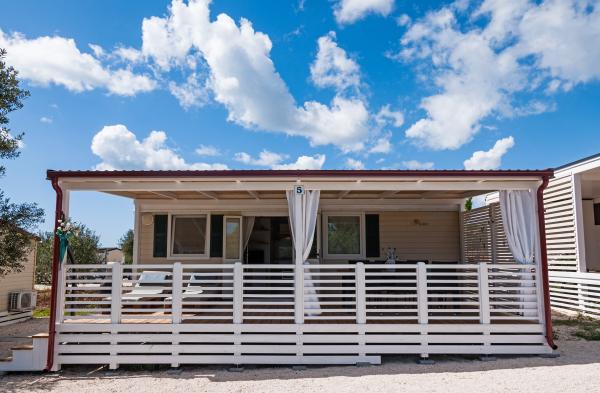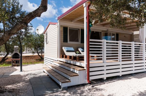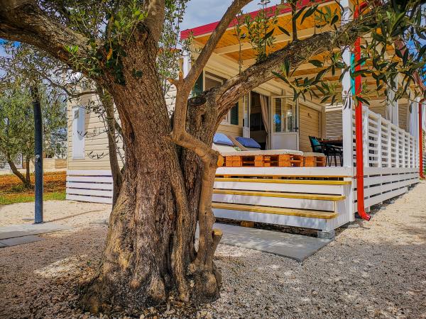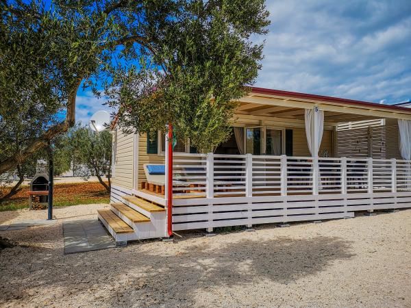 Domki mobilne znajdują się w obozie TRSTIKE, prywatnym obozie położonym w gaju oliwnym, nad morzem, w pobliżu piaszczystej plaży Triest i żwirowej plaży Bošana. To zakwaterowanie zapewnia radość z natury i ciszę. Znajduje się niedaleko centrum Biogradu na Moru, zaledwie 15-20 minut spacerem do morza, gdzie znajdują się wszystkie obiekty rozrywkowe i gastronomiczne. Pobliskie historyczne miasta Zadar (30 km) i Sibenik (41 km) oferują turystom interesujące i bogate dziedzictwo kulturowe Chorwacji. Park rozrywki Fun Park Mirnovec oddalony jest o 5, 6 km / 10 minut jazdy samochodem. Przyczepa stacjonarna: 2 sypialnie (jedna sypialnia z 1 dużym łóżkiem, druga sypialnia z 2 pojedynczymi łóżkami, zestaw narożny (możliwość zamiany na łóżko dla jednej osoby dorosłej lub 2 dzieci) ze stołem, 2 x prysznic / WC, taras : 26 m2 z meblami ogrodowymi i 2 leżakami Przed domkiem znajduje się prysznic na świeżym powietrzu i grill.