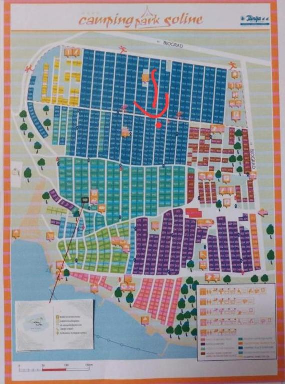 Kemping PARK SOLINE położony jest w cieniu gęstego lasu sosnowego, przy samej piaszczystej i żwirowej plaży, na 20 ha atrakcyjnych stanowiskach kempingowych dla kamperów, przyczep kempingowych i namiotów, które schodzą schodkami w stronę wybrzeża. Znajduje się niedaleko centrum Biogradu, do którego nowo wybudowana promenada prowadzi Państwa przyjemnym spacerem wzdłuż najatrakcyjniejszych plaż Biogradu. Domek mobilny Blue Lagoon położony jest na działce 785 niedaleko recepcji obozu.