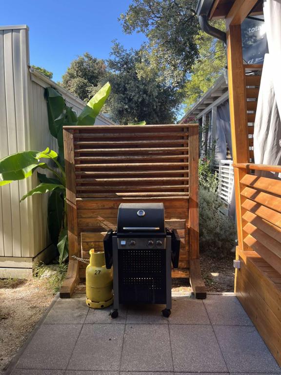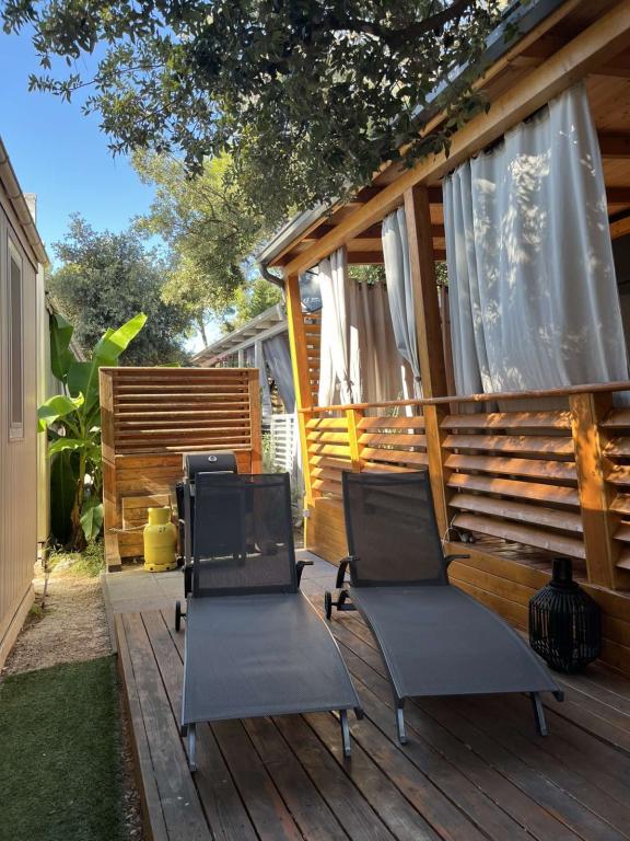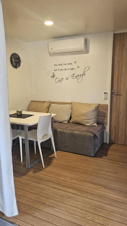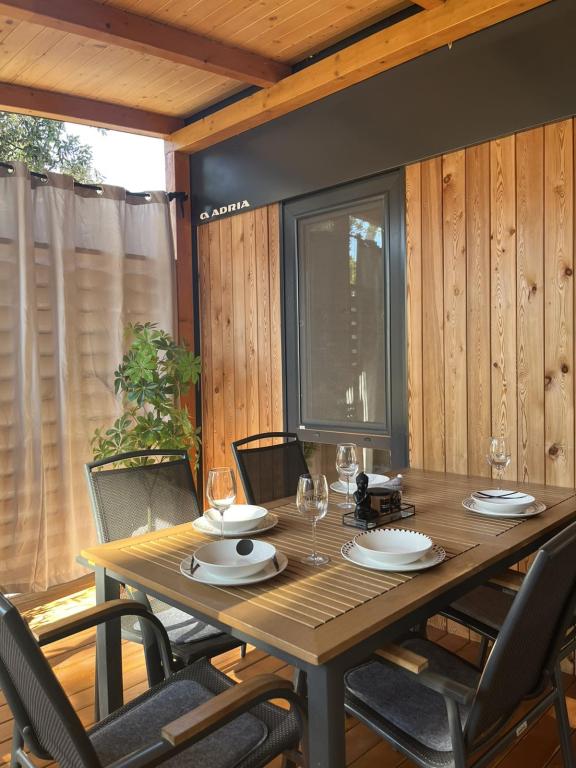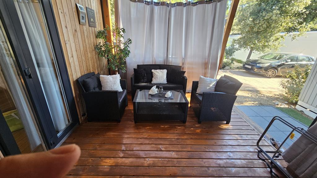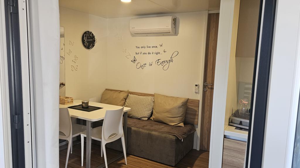 Nowoczesny, klimatyzowany dom mobilny na kempingu Park Soline, zaledwie kilka kroków od plaży i 15 minut spacerem do centrum Biogradu. Oferuje on 2 sypialnie, kuchnię, salon, 2 łazienki i zadaszony taras z meblami ogrodowymi. Na miejscu dostępne jest bezpłatne Wi-Fi, parking, animacje dla dzieci, boiska sportowe i restauracja śródziemnomorska. Idealny dla rodzin lub par szukających relaksu w cieniu sosen, blisko wszystkich głównych atrakcji.