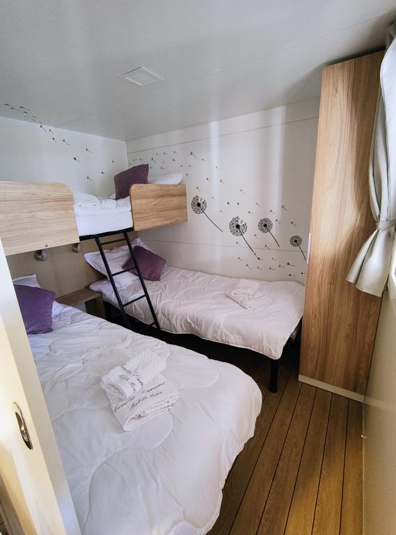 Nasz nowocześnie wyposażony dom mobilny oferuje komfortowe zakwaterowanie dla maksymalnie 7 osób, z 2 przestronnymi sypialniami, salonem z rozkładaną sofą i 2 łazienkami. Do dyspozycji Gości jest duży zadaszony taras z jadalnią i częścią wypoczynkową na świeżym powietrzu, idealny na długie wieczorne spotkania przy grillu gazowym i kuchence. Zadaszony taras otoczony jest sosnami i wieje w nim delikatna bryza znad morza. Po jednej stronie tarasu znajduje się przestronna jadalnia, a po drugiej stronie nasz zewnętrzny salon oferuje wygodne miejsce do siedzenia, a także huśtawkę z funkcją „jajka” dla pełnej relaksu. Na otwartej przestrzeni można również cieszyć się słońcem lub cieniem, na dużym, wygodnym leżaku z małym stolikiem, gdzie można delektować się koktajlami, zimnymi napojami lub poczytać książkę. Dom znajduje się 3 minuty od pięknej plaży.