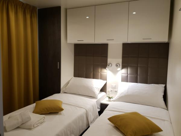 Obóz Dalmaris to nowo otwarty obiekt, który od 1 czerwca 2019 r. Oferuje 4 luksusowe domy kempingowe. Znajduje się niedaleko centrum Biogradu na Moru, w samym sercu Dalmacji. Z przestronnych tarasów (25 m2) roztacza się widok na morze i kamienistą plażę, zaledwie 30 metrów od obiektu. Doskonała lokalizacja kempingu umożliwia zwiedzanie pięknego wybrzeża i ukrytych zatoczek oraz poznanie pięknego i tętniącego życiem miasta i jego klubów nocnych. Centrum miasta znajduje się 1, 5 km od obozu Dalmaris. Dzięki pięknej, zielonej okolicy i urokliwej linii brzegowej jest to z pewnością jedno z najlepszych miejsc wakacyjnych w Chorwacji. Dla tych, którzy szukają zajęć, zgiełku i piękna aktywnego wypoczynku, jest plaża Soline. Aktywni urlopowicze mogą korzystać z różnych obiektów sportowych na lądzie i na morzu - tenis, nurkowanie, siatkówka, rowery wodne i łodzie wiosłowe. Dobrze wyposażona marina, apteka, kawiarnie i kluby znajdują się w centrum Biogradu nad morzem. Poczta: camping. dalmaris @ gmail. com