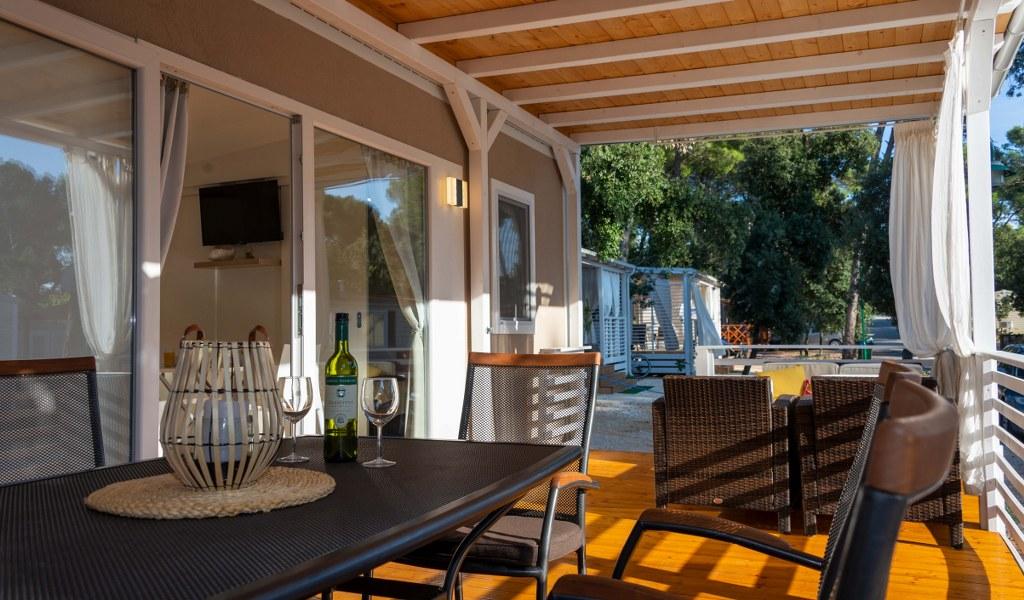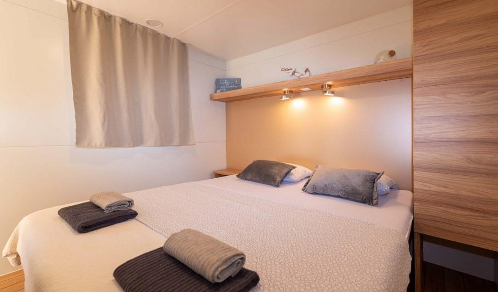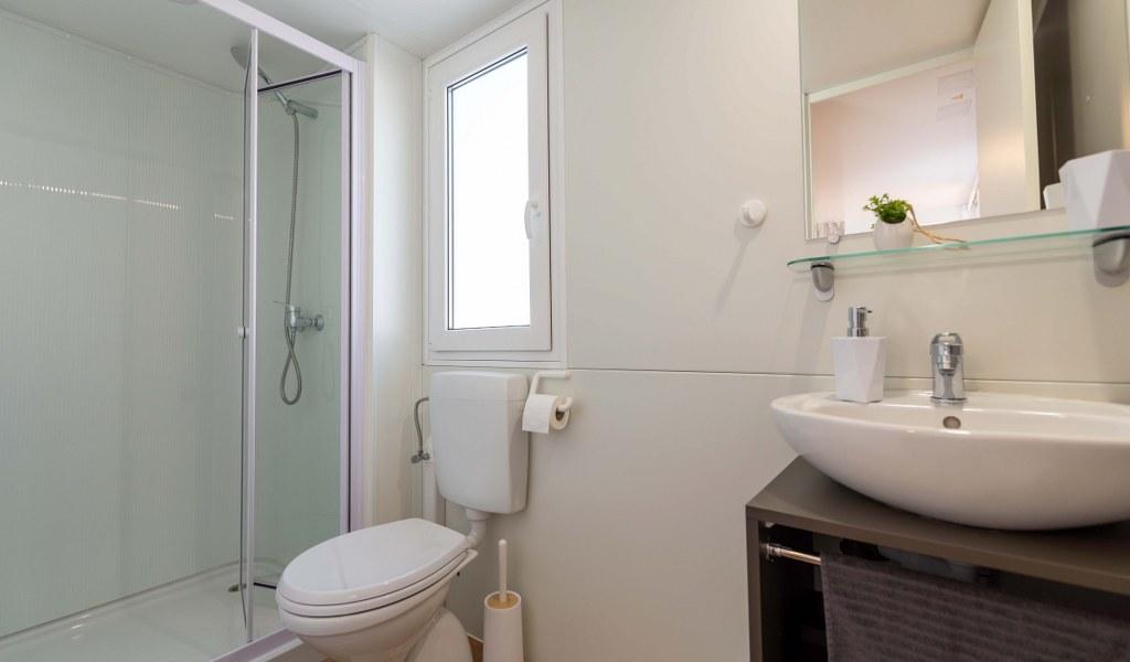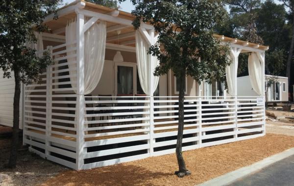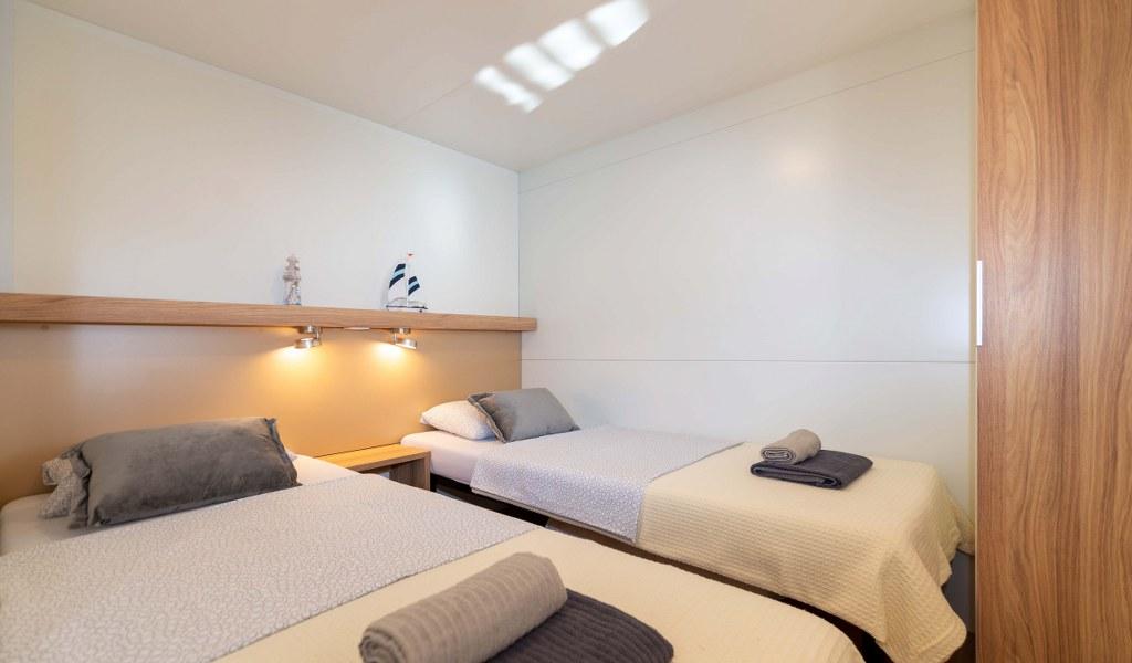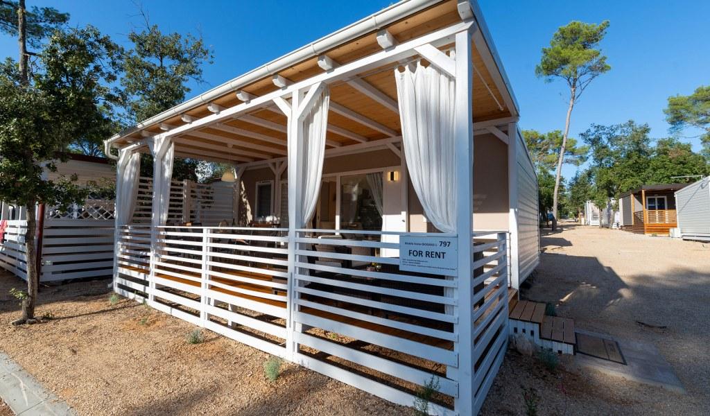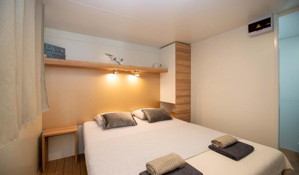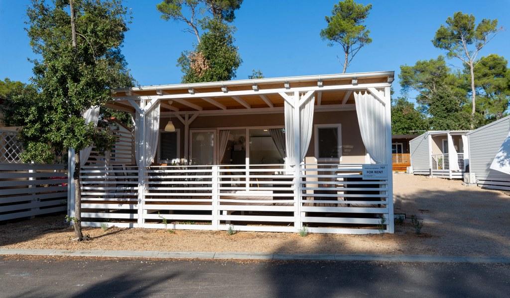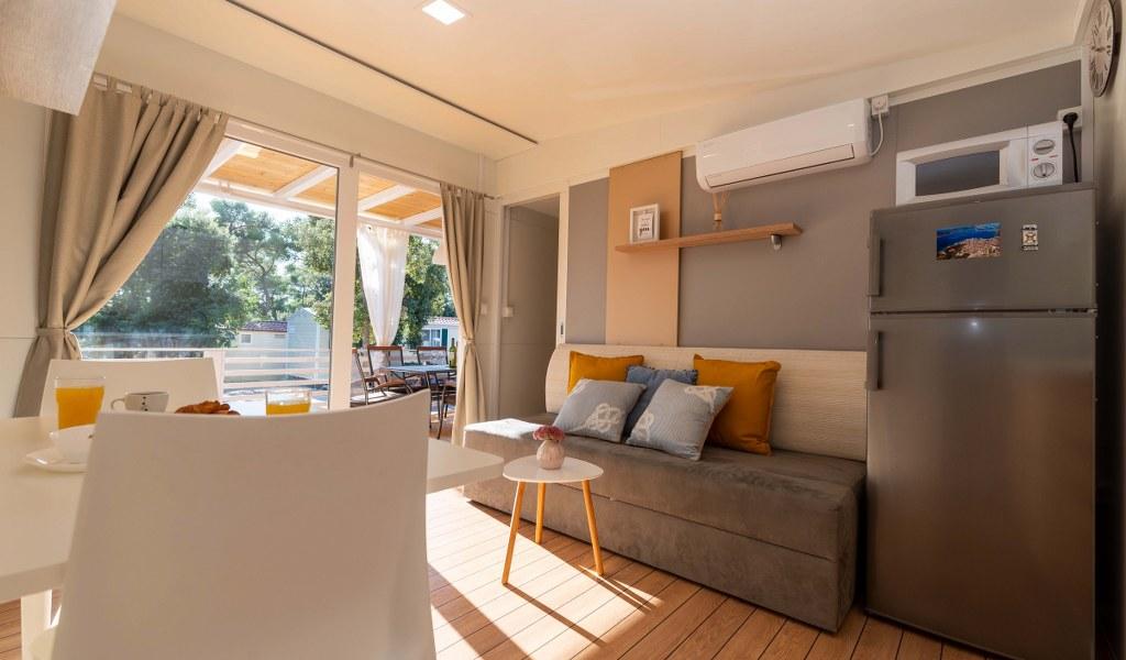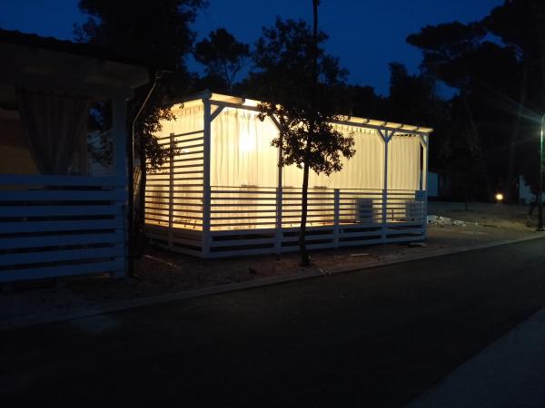 Nowa, nowoczesna iw pełni wyposażona przyczepa stacjonarna z dwoma pokojami, salonem z rozkładaną sofą (135x180 cm), w pełni wyposażoną kuchnią z telewizją satelitarną, klimatyzacją, siecią WIFI, kuchenką mikrofalową, el. grill, mały sprzęt AGD itp., DWIE ŁAZIENKI i duży taras 7, 5 X 3 metry, znajduje się w sosnowym lesie na kempingu Soline w Biograd na moru. Dom znajduje się 250 metrów od plaży, kawiarni, restauracji, plac zabaw dla dzieci, pralko-suszarki, bankomat, sklep, piekarnia i wszystko, co potrzebne do komfortowego pobytu! W bezpośrednim sąsiedztwie obozu, około 1500 metrów od hotelu znajduje się centrum Biogradu z różnymi obiektami, a także marina Kornati!