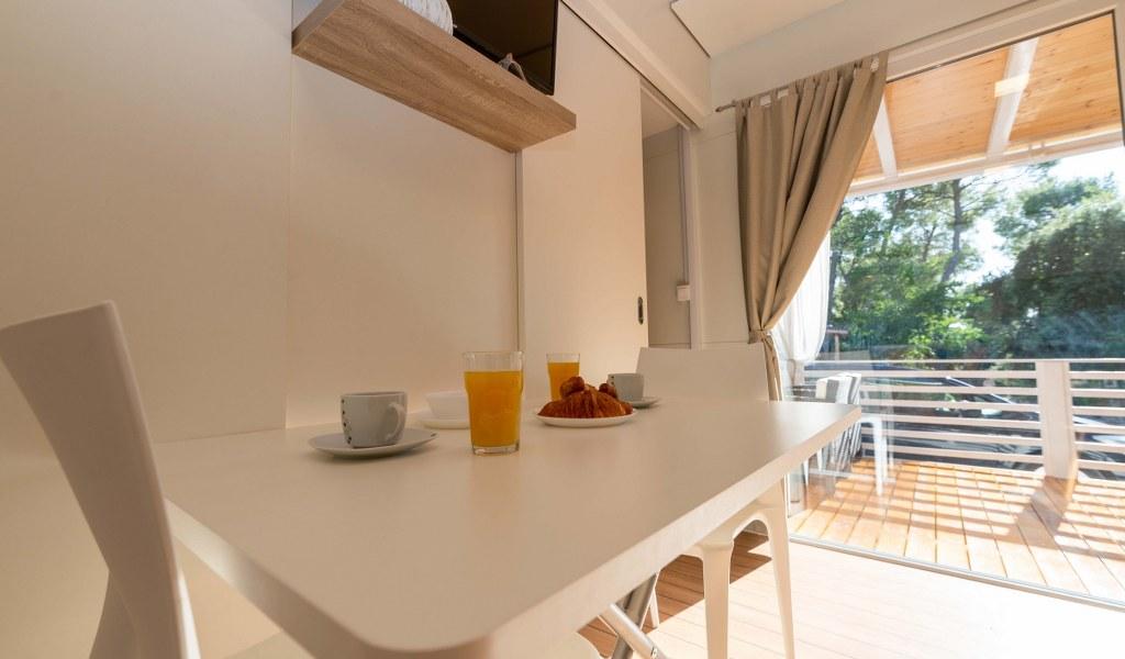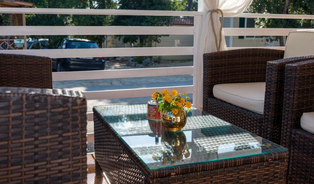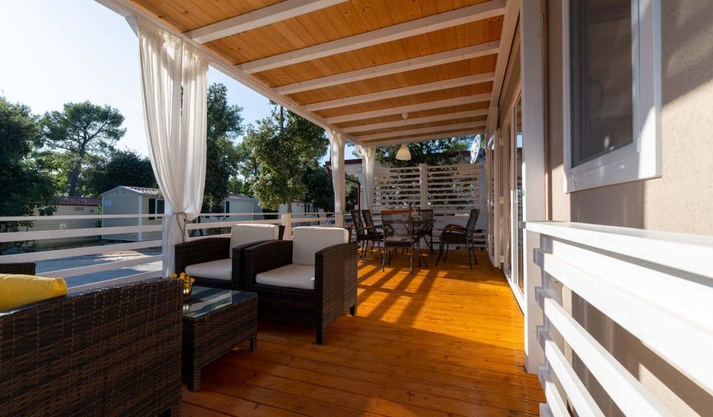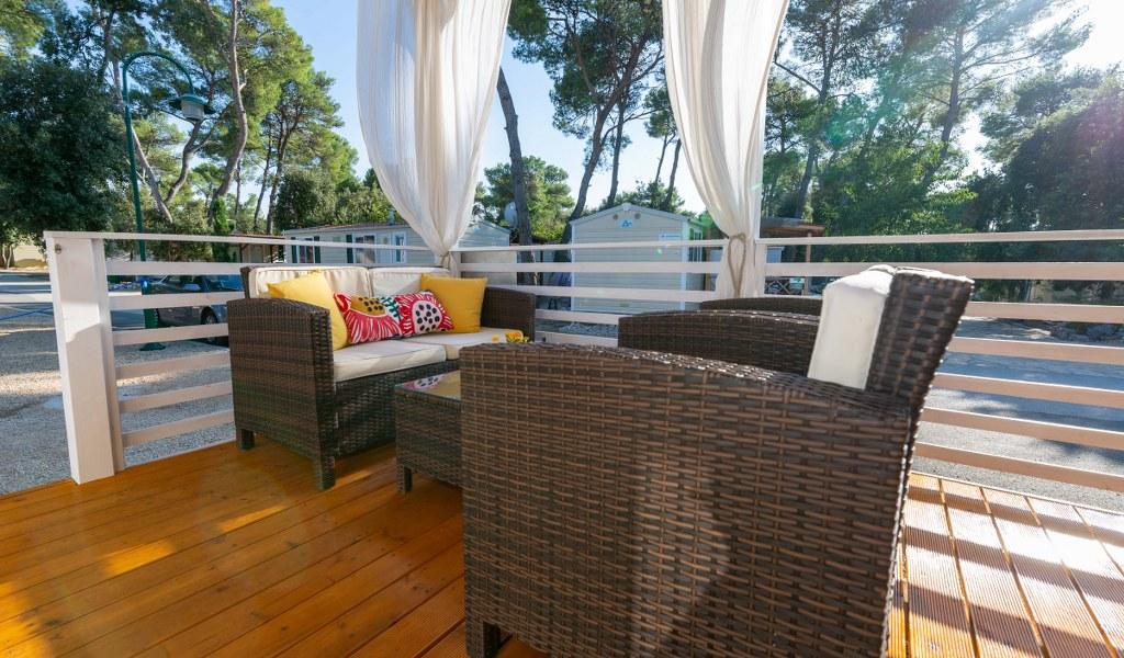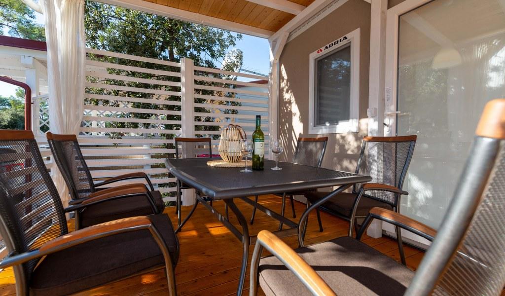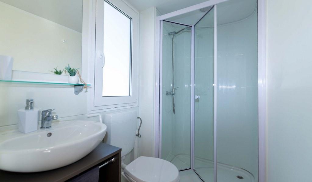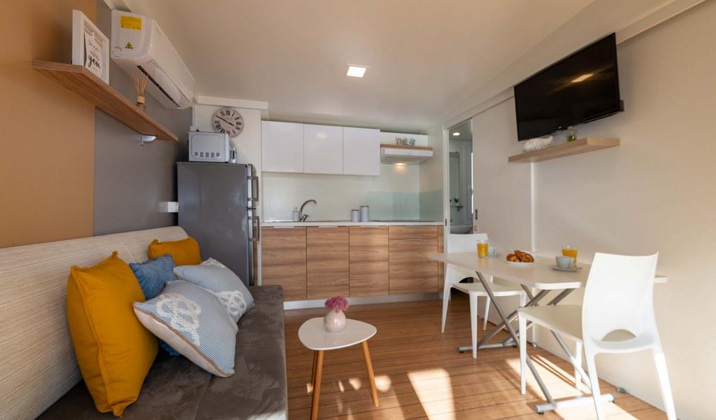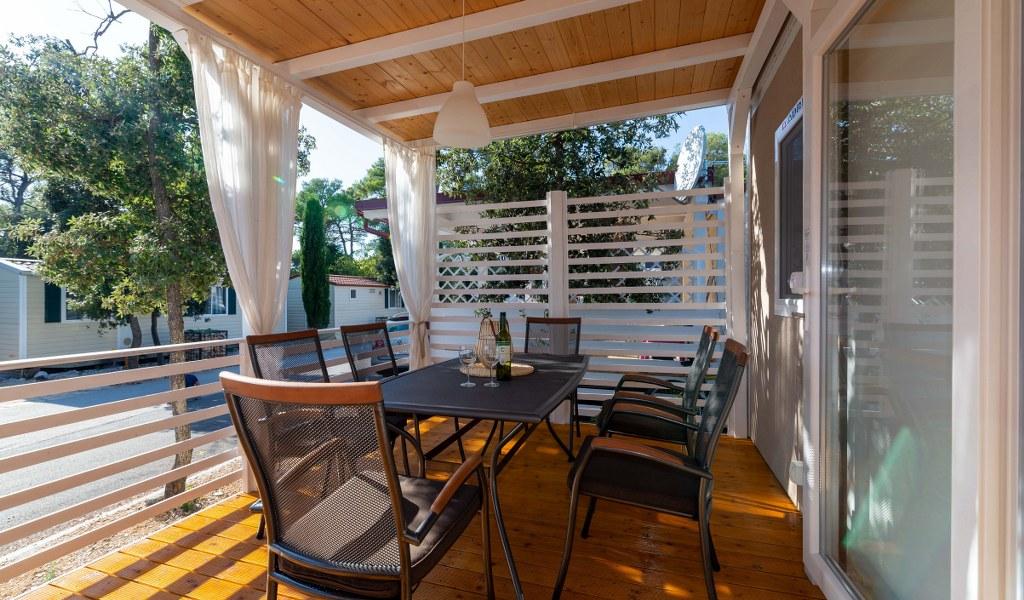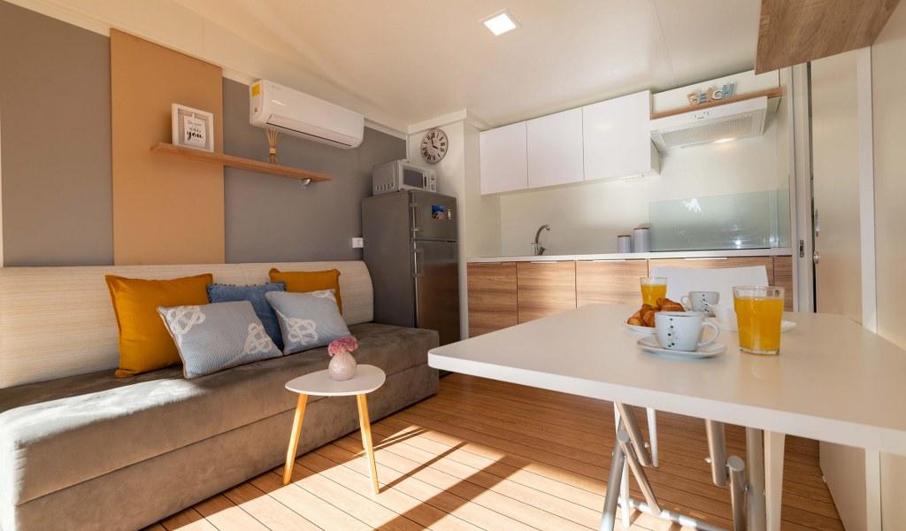 Nowa, nowoczesna iw pełni wyposażona przyczepa stacjonarna z dwoma pokojami, salonem z rozkładaną sofą (135x180 cm), w pełni wyposażoną kuchnią z telewizją satelitarną, klimatyzacją, siecią WIFI, kuchenką mikrofalową, el. grill, mały sprzęt AGD itp., DWIE ŁAZIENKI i duży taras 7, 5 X 3 metry, znajduje się w sosnowym lesie na kempingu Soline w Biograd na moru. Dom znajduje się 250 metrów od plaży, kawiarni, restauracji, plac zabaw dla dzieci, pralko-suszarki, bankomat, sklep, piekarnia i wszystko, co potrzebne do komfortowego pobytu! W bezpośrednim sąsiedztwie obozu, około 1500 metrów od hotelu znajduje się centrum Biogradu z różnymi obiektami, a także marina Kornati!