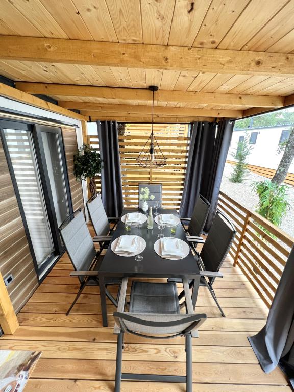 Dom zawiera: 2 sypialnie, kuchnię (kompletny falownik), jadalnię, jedną łazienkę, w pełni wyposażony zadaszony taras 32 m2, łóżeczko dla dziecka, karmnik dla dziecka, suszarkę do włosów, ekspres do kawy, czajnik, grill, toster, kuchenkę mikrofalową, żelazko, ręczniki , Pościel, Jajowar, Mikser, Odkurzacz