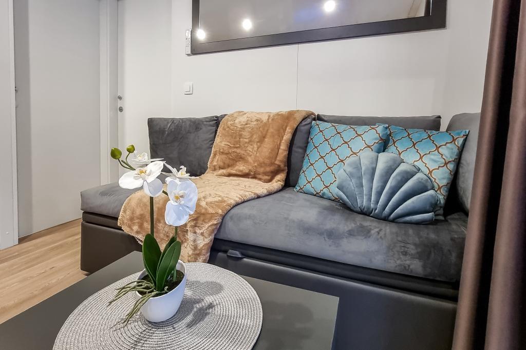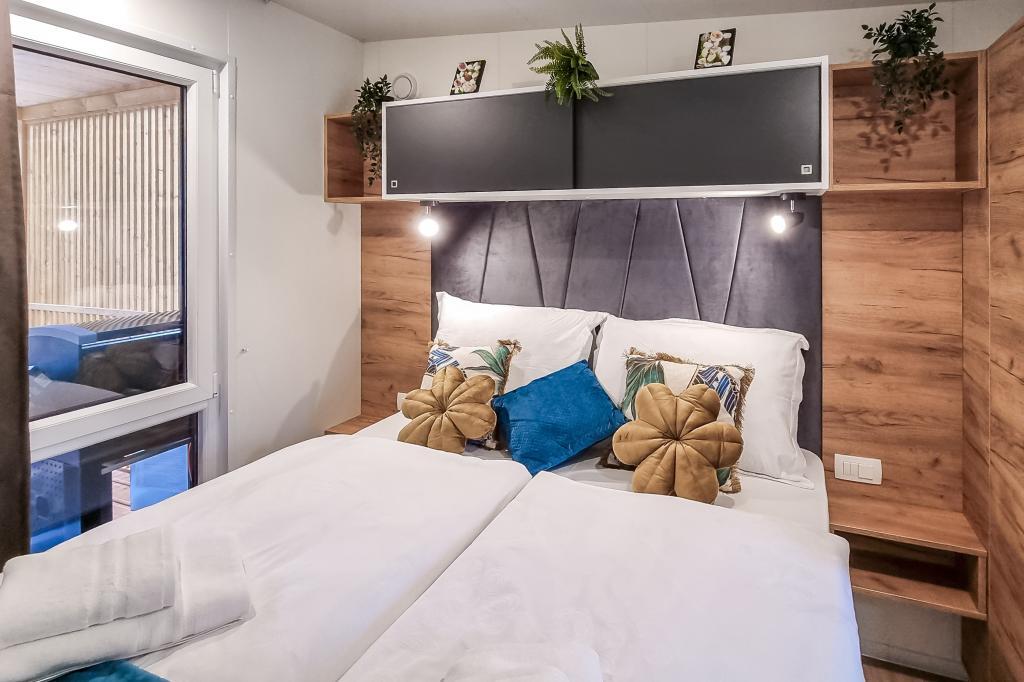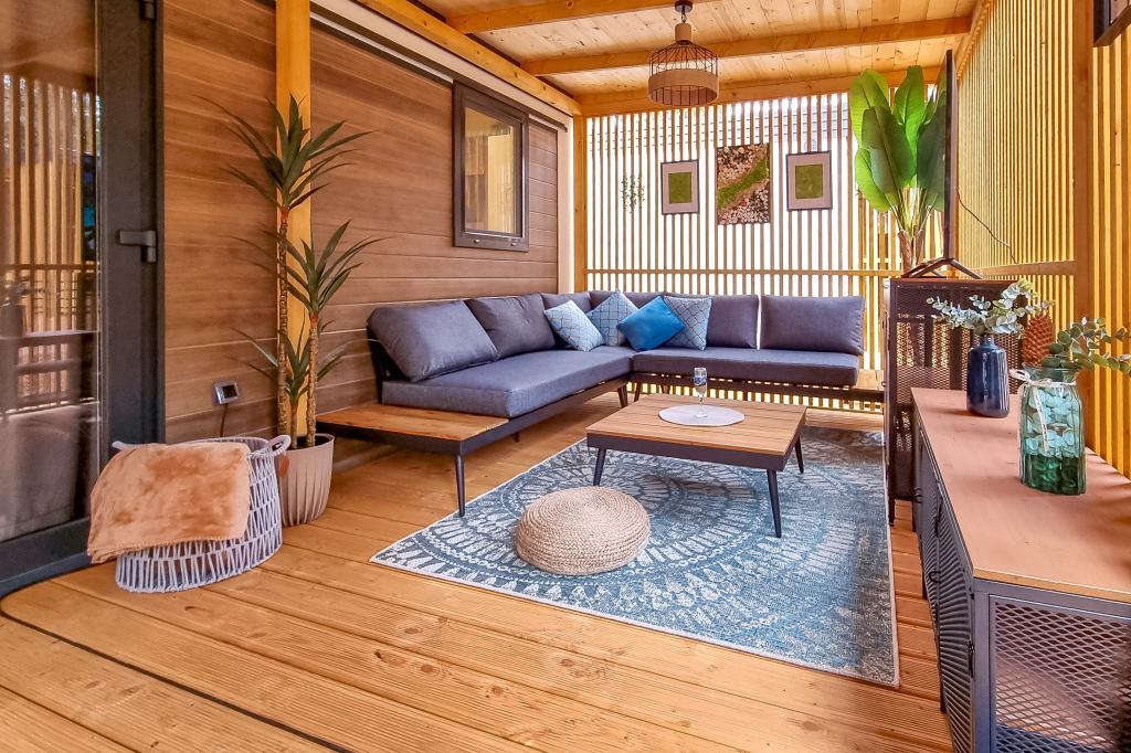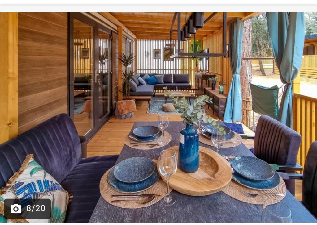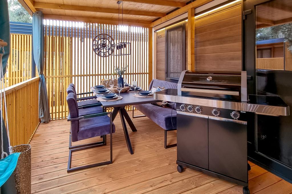 Nasz nowocześnie wyposażony dom mobilny oferuje komfortowe zakwaterowanie dla maksymalnie 6 osób, z 2 przestronnymi sypialniami, salonem z rozkładaną sofą i 2 łazienkami. Do dyspozycji Gości jest duży zadaszony taras z jadalnią i salonem na świeżym powietrzu, idealny na długie wieczorne spotkania. Można tu zagrać w rzutki lub zrelaksować się przed dużym telewizorem, grillując na naszym dużym grillu gazowym i kuchence ogrodowej. Zadaszony taras otoczony jest sosnami i łagodnie powiewa morską bryzą. Po jednej stronie tarasu znajduje się przestronna jadalnia z wygodną sofą i jeszcze wygodniejszymi fotelami, a po drugiej stronie nasz salon na świeżym powietrzu oferuje komfortową część wypoczynkową, gdzie można nie tylko odpocząć, ale także oglądać ulubione programy telewizyjne na dużym telewizorze z kanałami satelitarnymi, Netflix i HBO GO. Dom znajduje się 3 minuty od pięknej plaży.
