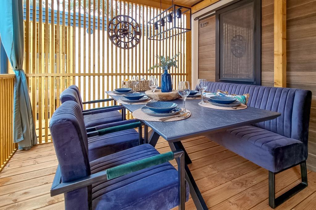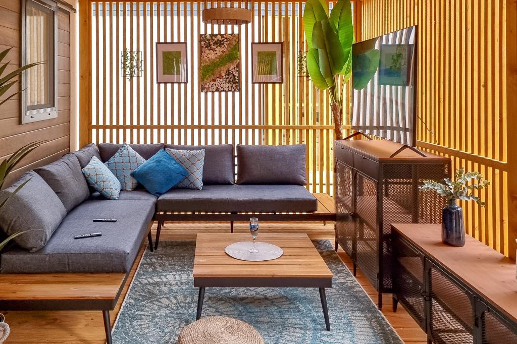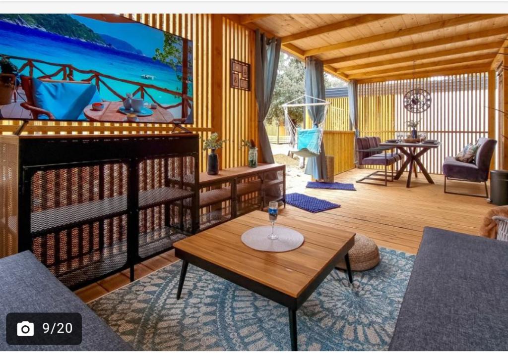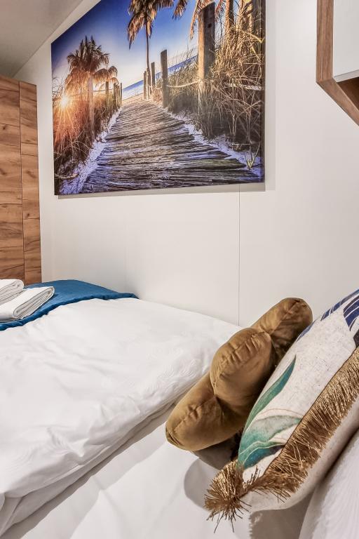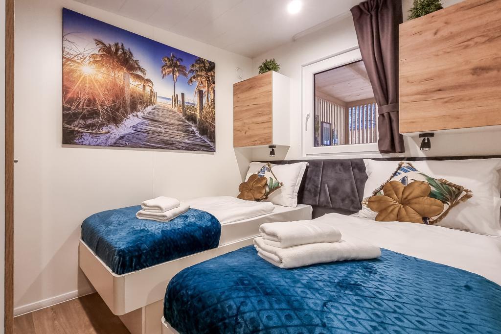 Nasz nowocześnie wyposażony dom mobilny oferuje komfortowe zakwaterowanie dla maksymalnie 6 osób, z 2 przestronnymi sypialniami, salonem z rozkładaną sofą i 2 łazienkami. Do dyspozycji Gości jest duży zadaszony taras z jadalnią i salonem na świeżym powietrzu, idealny na długie wieczorne spotkania. Można tu zagrać w rzutki lub zrelaksować się przed dużym telewizorem, grillując na naszym dużym grillu gazowym i kuchence ogrodowej. Zadaszony taras otoczony jest sosnami i łagodnie powiewa morską bryzą. Po jednej stronie tarasu znajduje się przestronna jadalnia z wygodną sofą i jeszcze wygodniejszymi fotelami, a po drugiej stronie nasz salon na świeżym powietrzu oferuje komfortową część wypoczynkową, gdzie można nie tylko odpocząć, ale także oglądać ulubione programy telewizyjne na dużym telewizorze z kanałami satelitarnymi, Netflix i HBO GO. Dom znajduje się 3 minuty od pięknej plaży.