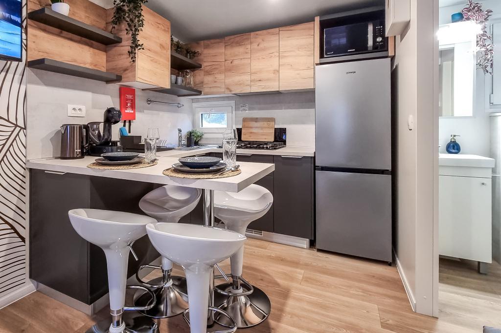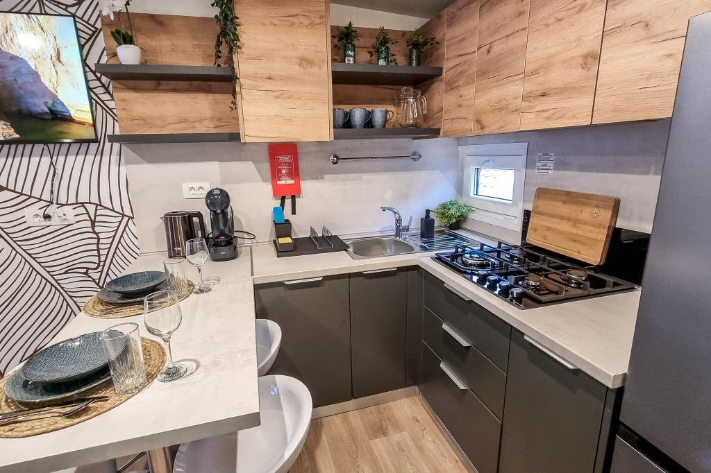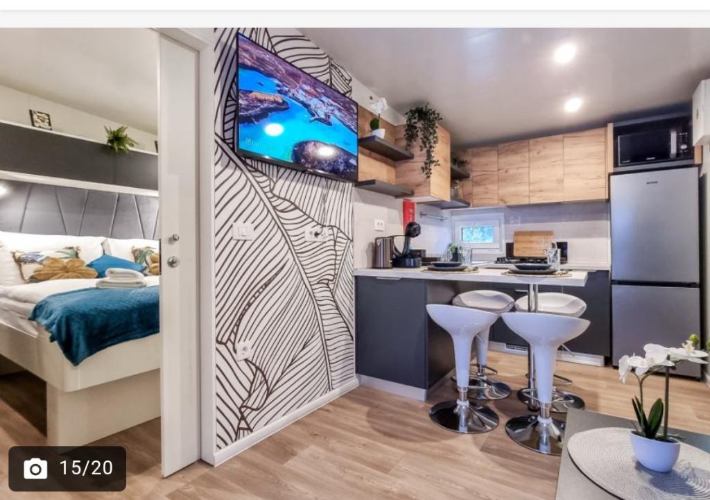 ️Duży zadaszony taras z jadalnią i salonem na świeżym powietrzu z dużym telewizorem i rzutkami ️Duży grill gazowy + kuchenka gazowa ️W pełni wyposażona kuchnia (lodówka, kuchenka mikrofalowa, kuchenka gazowa, czajnik, ekspres do kawy, zmywarka, toster, wszystkie niezbędne naczynia) ️Salon z dużym telewizorem ️Darmowe Wi-Fi, telewizja satelitarna, klimatyzacja ️Wygodna pościel i ręczniki z adamaszku ️Suszarka do włosów, żelazko ️Krzesełko dla dzieci ️1 miejsce parkingowe, drugie miejsce parkingowe za dodatkową opłatą. Kemping z domkami mobilnymi Pearl House znajduje się zaledwie 3 minuty spacerem od piaszczystej i kamienistej plaży oraz 10 minut spacerem od centrum Biogradu. Kemping i jego okolice oferują wszystko, czego potrzebujesz na relaksujący urlop – od sklepów i restauracji po boiska sportowe i place zabaw dla dzieci. Największą przyjemnością jest korzystanie ze słońca i morza, a także możliwość wzięcia udziału w wycieczkach do atrakcyjnych parków narodowych, takich jak Park Narodowy Krka, Park Narodowy Kornati, Park Narodowy Paklenica, lub zabytkowych miast, takich jak Zadar i Szybenik.