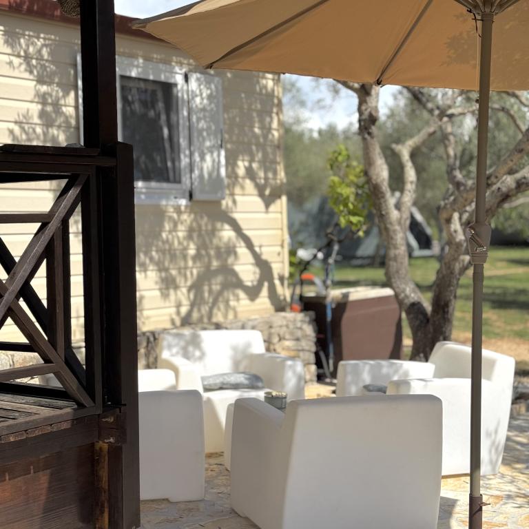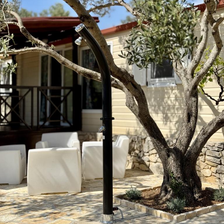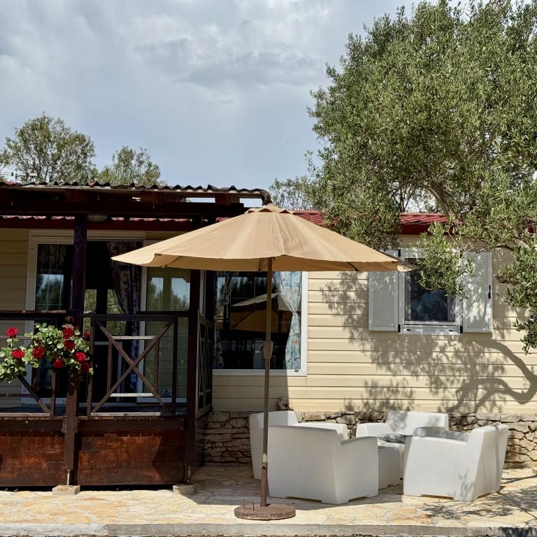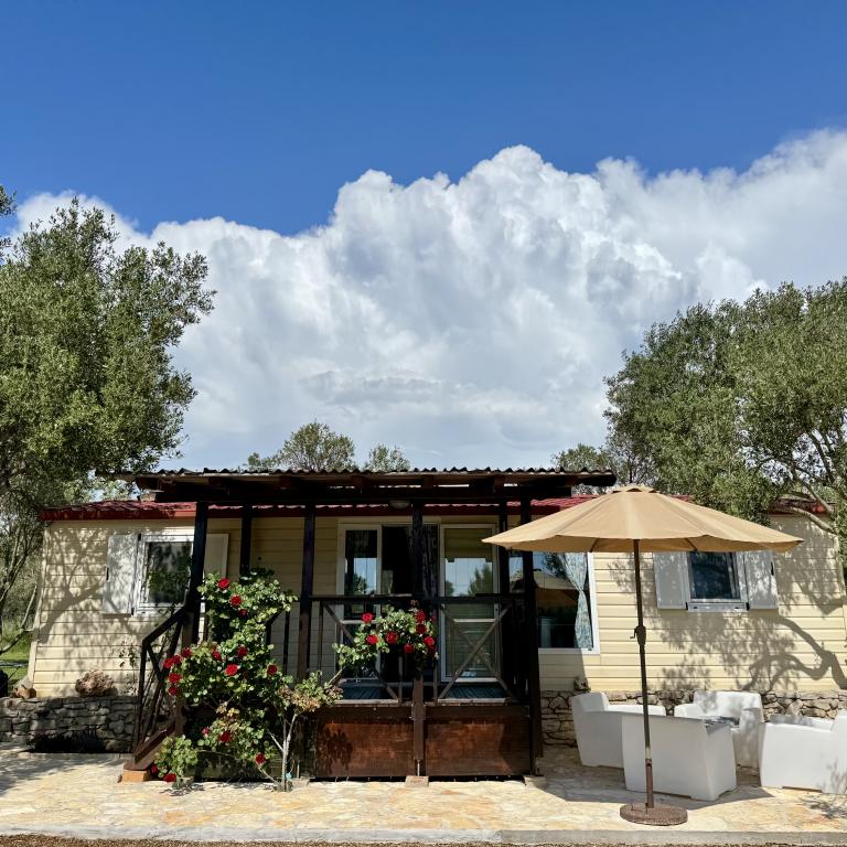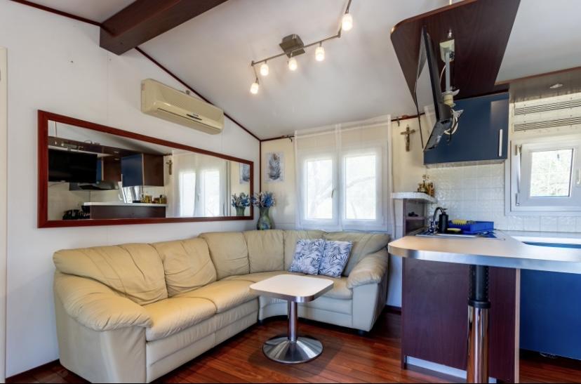 Domek mobilny położony jest na terenie obozu Bakija, 40 m od morza, z łatwym dostępem do plaży, niedaleko plaży Soline, 2-3 minuty na piechotę, 1 minuta spacerem do rynku Studenac i 7-8 minut pieszo. pieszo do centrum W pełni wyposażone z ogrodem, kuchnią, wygodnym salonem. Własny grill na świeżym powietrzu w domku i własny prysznic na świeżym powietrzu. Obiekt przeznaczony jest dla 4 osób, 2 pokoi, 2 łazienek, z czego jedna to łazienka z wanną z masażem. Przestronny taras, idealny na przyjemny pobyt z widokiem na morze i piękne zachody słońca.