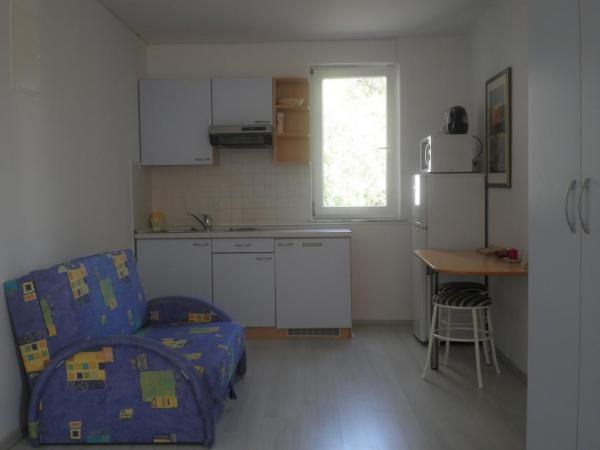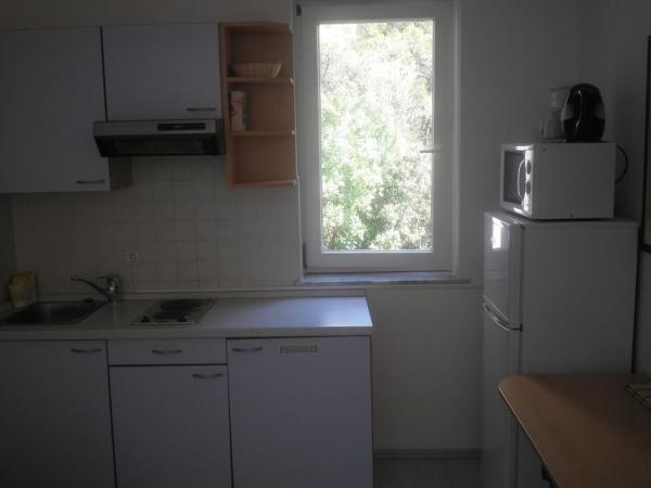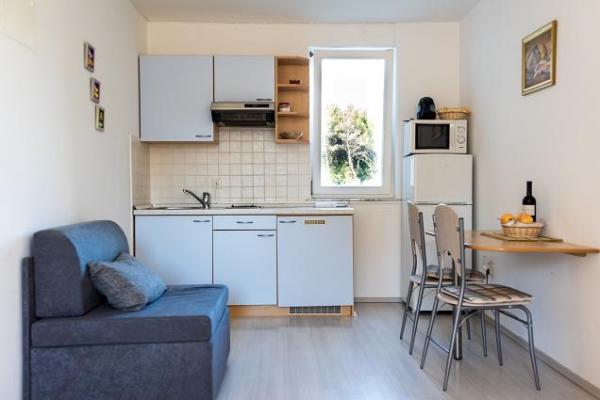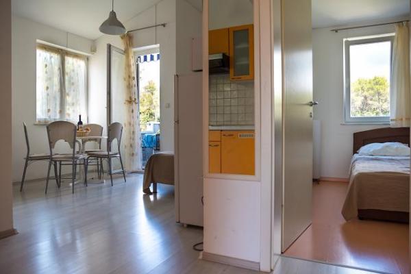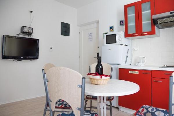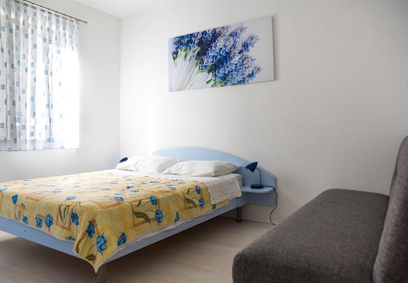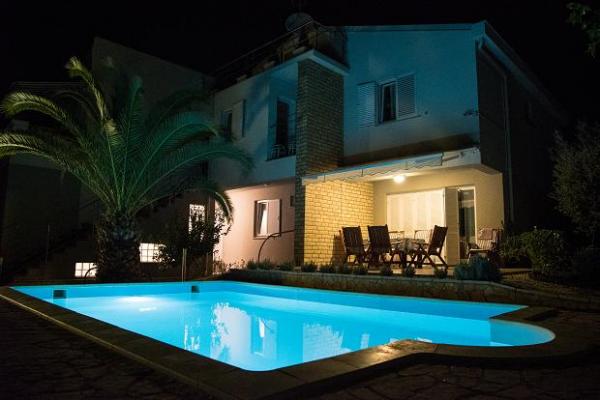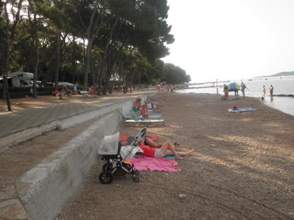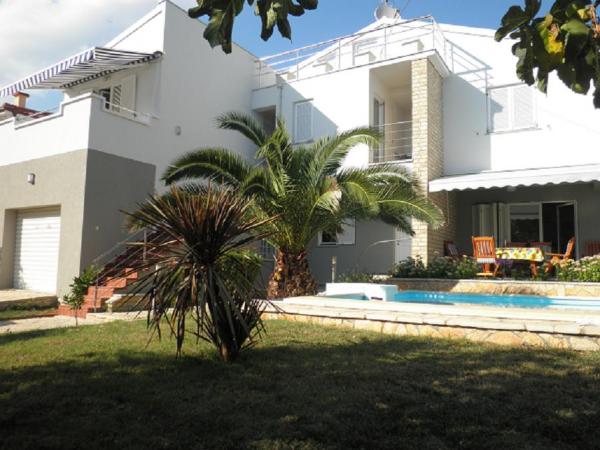 Villa, apartamenty, Nada to nowoczesny wybudowany hotel (2003) położony w sosnowym lesie, z dala od morza przez 1-2 minut pieszo. Obiekt położony jest w cichej, spokojnej ulicy, tzw. ślepy sac, w którym istnieją tylko dwa domy. Z domu na wybrzeżu znajduje się promenada, która przez gęsty las sosnowy spacer z centrum miasta. Wszystkie plaże (piasek, żwir,) są wyposażone w prysznice i wzbogacony wiele innych atrakcji (saneczkowe, skutery, rowery wodne ...) i znajdują się w lesie sosnowym. Około 3 km. od apartamentu jest nowo otwarty park rozrywki MIRNOVEC (park rozrywki), która rozciąga się do 45 000 m2. Trzy apartamenty znajdują się na pierwszym piętrze i jeden apartament na parterze. Dom jest wolnostojący i jest w podwórku można przechowywać rowery, skutery itp W grilla podwórku dla gości. W domu znajduje się parking dla samochodów.