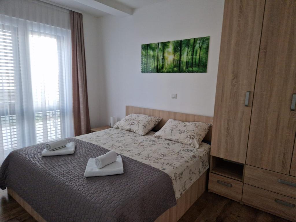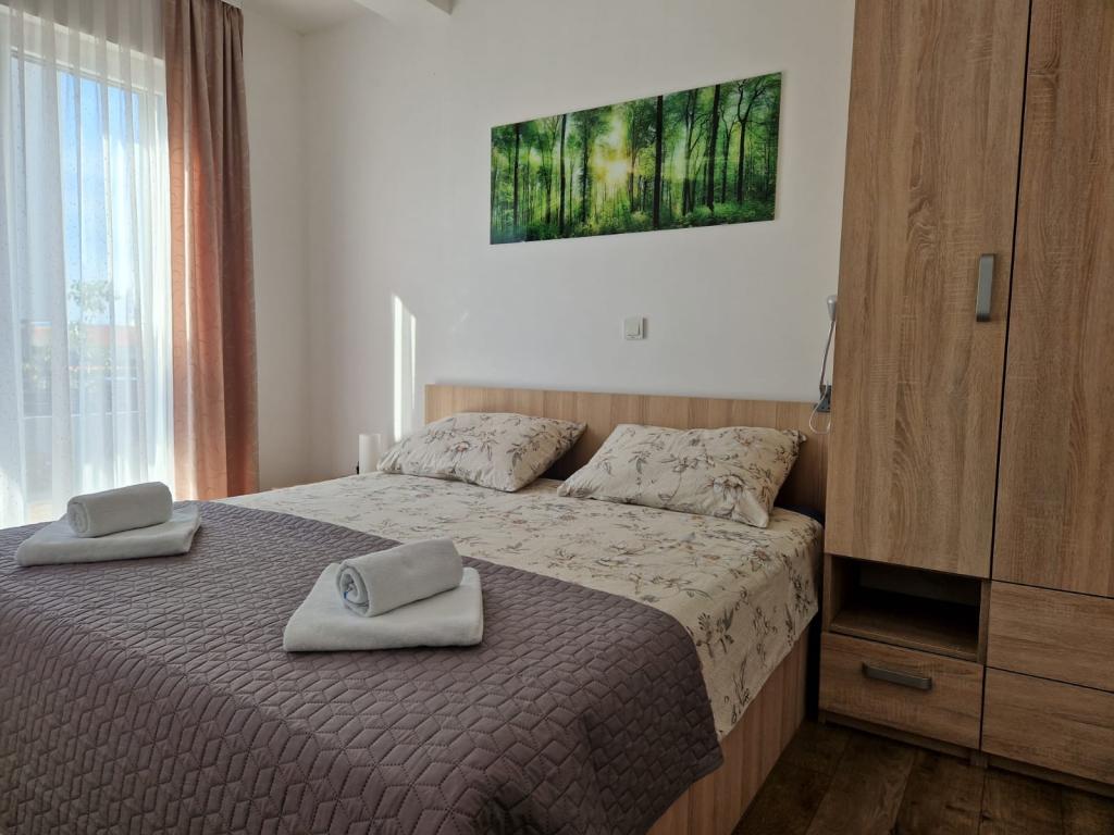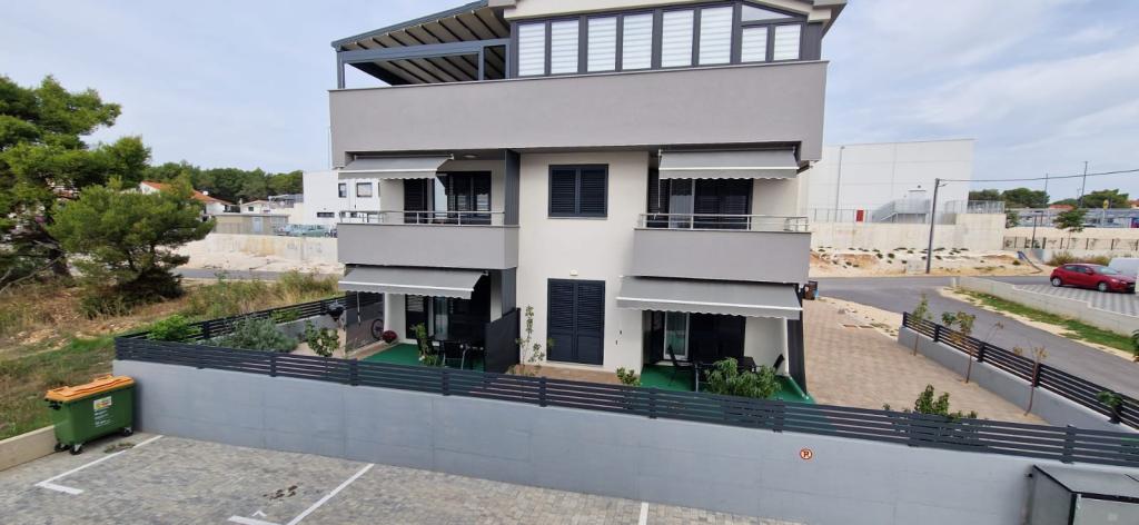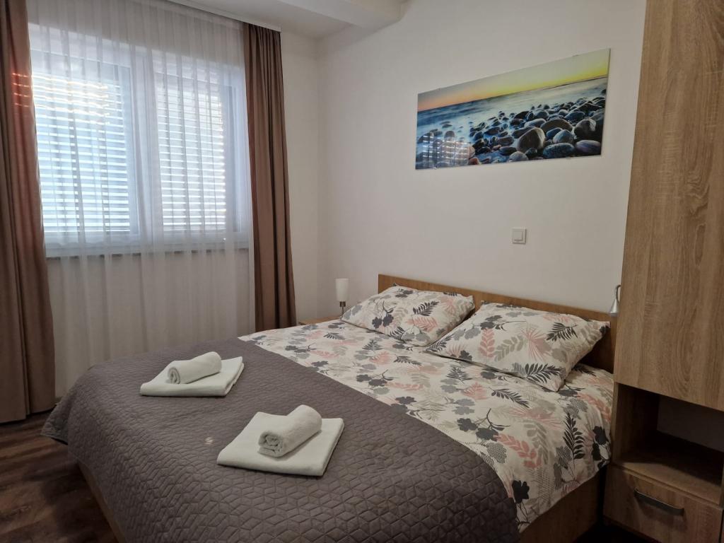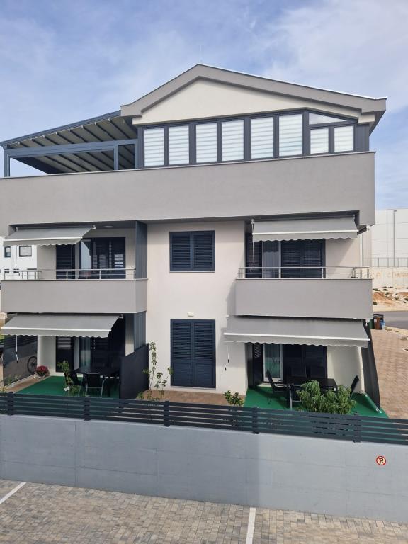 Villa Toni to nowo wybudowany budynek. Apartamenty są bardzo ładnie urządzone, nowoczesne i przestronne. Każdy apartament posiada w pełni wyposażoną kuchnię. W każdym salonie znajduje się rozkładana sofa. Pokoje wyposażone są w duże podwójne łóżka oraz wysokiej jakości i wygodne materace. Wszystkie apartamenty są klimatyzowane i wyposażone w pralki. Na tarasach i balkonach znajdują się markizy (przednie i boczne). Willa położona jest w spokojnej części miasta. Na podwórku znajduje się miejsce parkingowe. W pobliżu znajduje się kilka supermarketów, plaż, restauracji i kawiarni. To jest 10 minut spacerem do centrum i 5 minut do plaży.