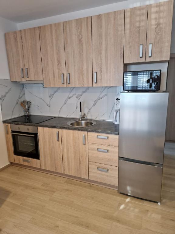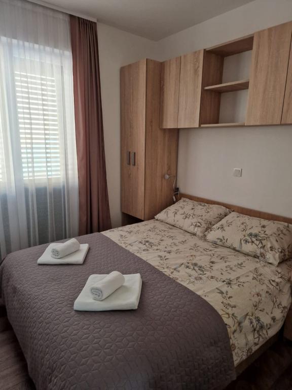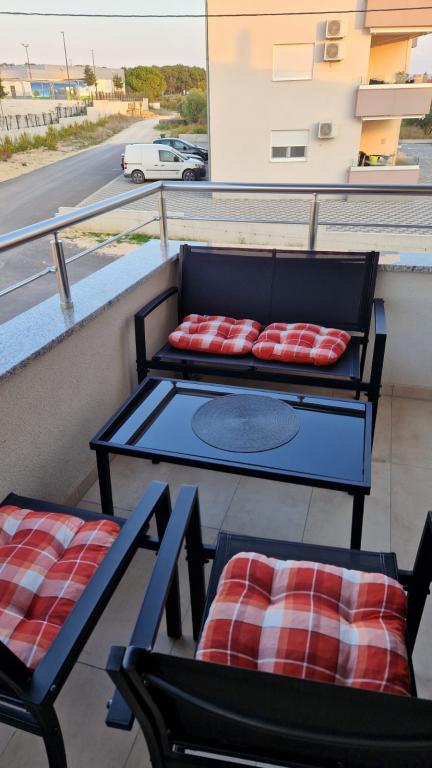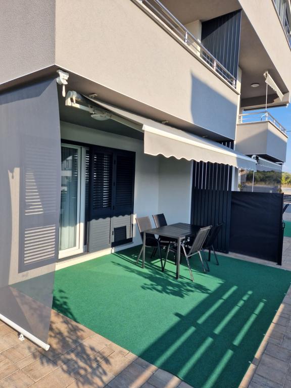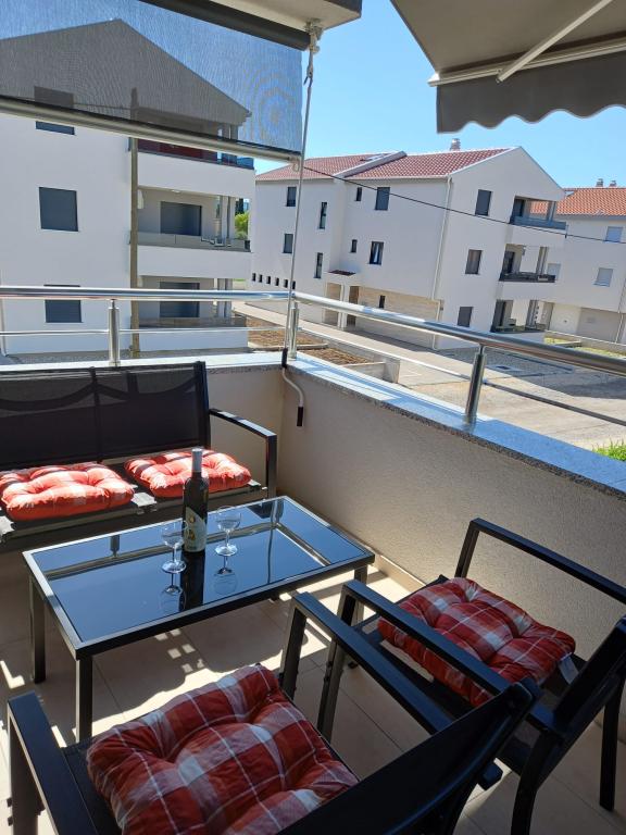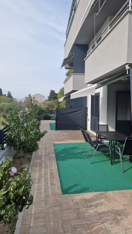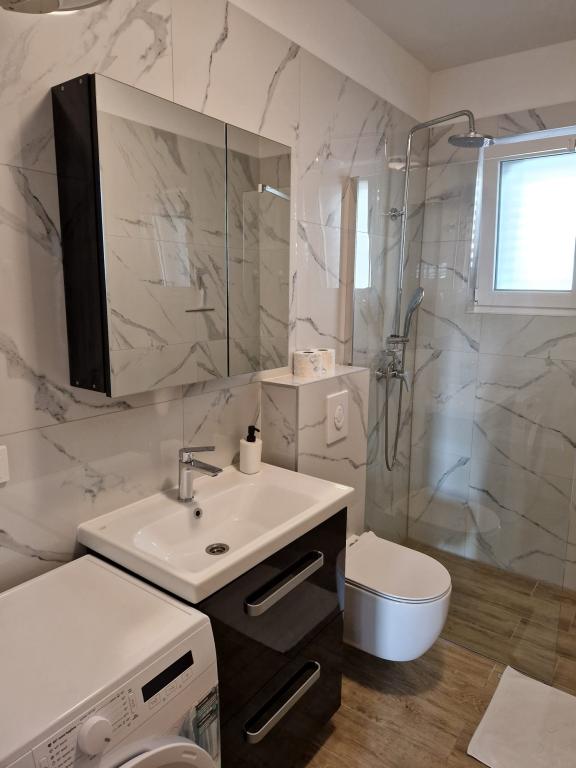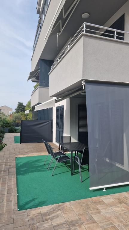 Villa Toni to nowo wybudowany budynek. Apartamenty są bardzo ładnie urządzone, nowoczesne i przestronne. Każdy apartament posiada w pełni wyposażoną kuchnię. W każdym salonie znajduje się rozkładana sofa. Pokoje wyposażone są w duże podwójne łóżka oraz wysokiej jakości i wygodne materace. Wszystkie apartamenty są klimatyzowane i wyposażone w pralki. Na tarasach i balkonach znajdują się markizy (przednie i boczne). Willa położona jest w spokojnej części miasta. Na podwórku znajduje się miejsce parkingowe. W pobliżu znajduje się kilka supermarketów, plaż, restauracji i kawiarni. To jest 10 minut spacerem do centrum i 5 minut do plaży.