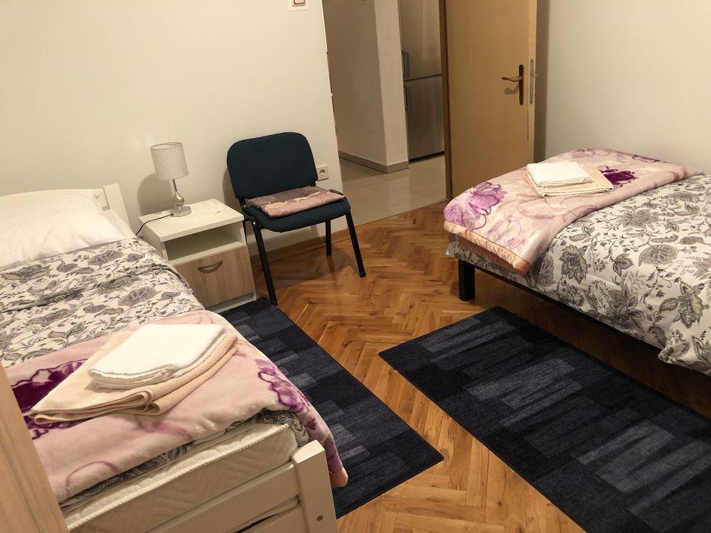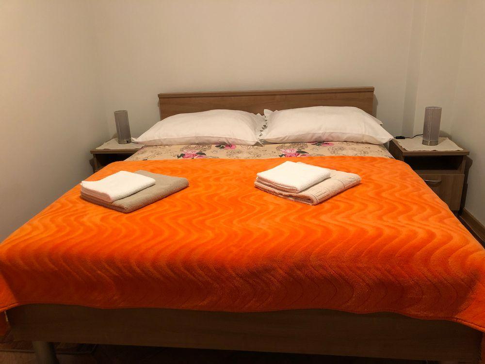 Mieszkanie znajduje się w prywatnym domu z osobnym wejściem. Znajduje się na parterze i może wygodnie pomieścić do 4 osób. Miejsce parkingowe znajduje się przed apartamentem i jest bezpłatne. Na ok. 50 m2 znajdują się: dwie sypialnie (dwa osobne łóżka 90x200 cm w jednej sypialni oraz łóżko małżeńskie 160x200 cm w drugim pokoju), salon z rozkładaną sofą, jadalnia zw pełni wyposażoną kuchnią, łazienka z prysznicem i pralką oraz tarasem. W salonie znajduje się klimatyzacja i telewizor, a w całym apartamencie można korzystać z bezpłatnego Wi-Fi.