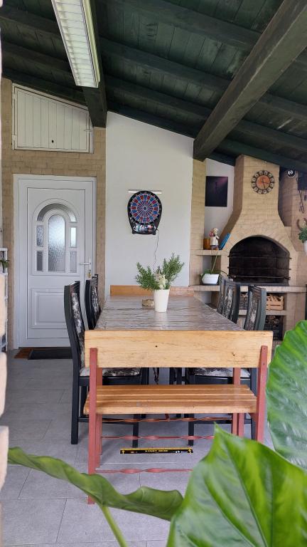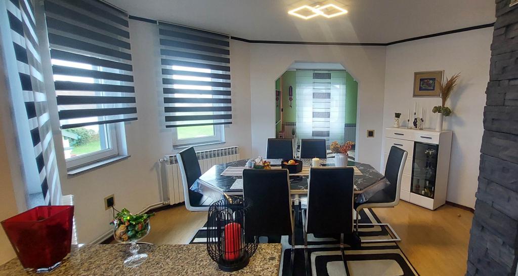 Apartament Matea oferuje liczne udogodnienia, które uczynią Państwa pobyt niezapomnianym. Zrelaksujcie się na balkonie z widokiem na okolicę lub cieszcie się wspólnymi chwilami w ogrodzie z grillem. Do Państwa dyspozycji oddajemy 3-4 miejsca parkingowe dla samochodów oraz możliwość korzystania z garażu. Przestronny taras jest idealnym miejscem na relaks, a wnętrze apartamentu emanuje ciepłem dzięki kominkowi. Komfort i jakość pobytu zapewniają: Wi-Fi, Smart TV, IPTV-Netflix, klimatyzacja, centralne ogrzewanie, pralka, żelazko, suszarka do włosów, naczynia, łóżeczko dziecięce oraz możliwość wynajmu długoterminowego. Apartament jest przyjazny dla alergików. Do dyspozycji są również rowery, którymi można zwiedzać piękną okolicę. Pralnia z pralką zapewni Państwu wygodę podczas pobytu. Sypialnia z wygodnym łóżkiem, Smart TV i eleganckimi meblami to idealne miejsce na relaks po męczącym dniu. Nie przegapcie okazji na niezapomniane wakacje w Apartamencie Matea. Zarezerwujcie pobyt i cieszcie się tym pięknym miejscem! Zapraszamy!