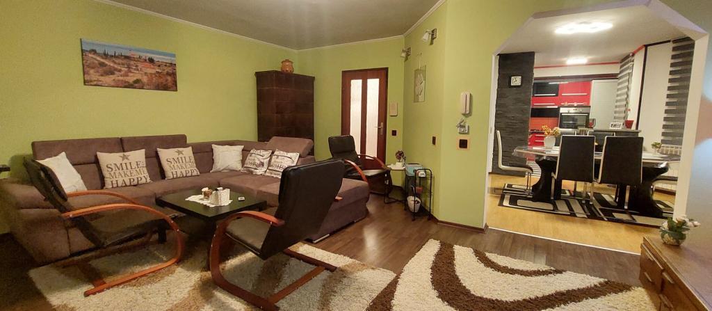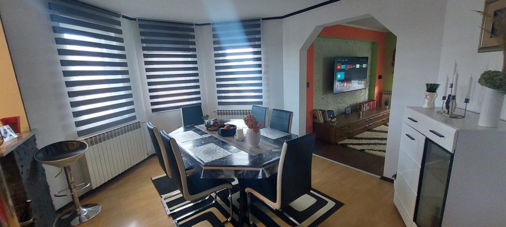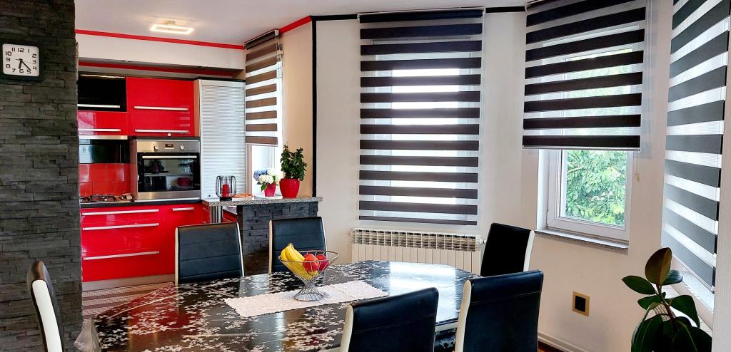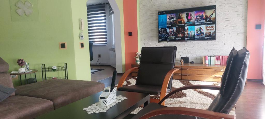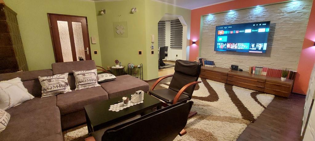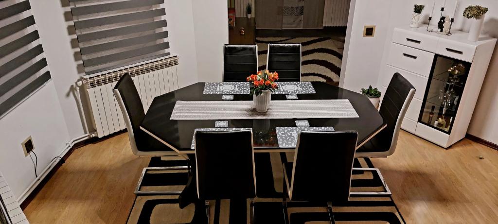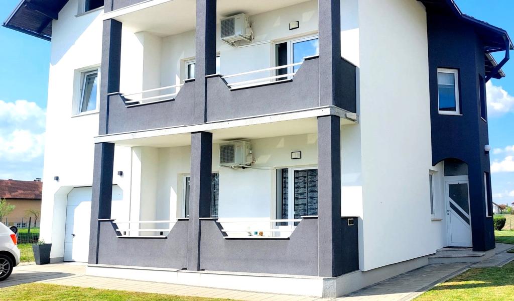 Zapraszamy na wspaniałe wakacje do naszego nowocześnie urządzonego apartamentu Matea, położonego w cichej i urokliwej miejscowości Bjelovar! Ten przestronny, 70-metrowy apartament może pomieścić do 4 osób i znajduje się w cichej i spokojnej okolicy (ulica), 2 km od centrum miasta, bez korków i hałasu samochodowego. Apartament składa się z sypialni, łazienki, kuchni, salonu, jadalni, balkonu i zadaszonego tarasu. Do dyspozycji Gości jest parking na 3-4 samochody oraz możliwość korzystania z garażu, zadaszonego tarasu z grillem dla 10 osób, placu zabaw dla dzieci oraz ogrodzonego, pełnego zieleni ogrodu o powierzchni 700 m².