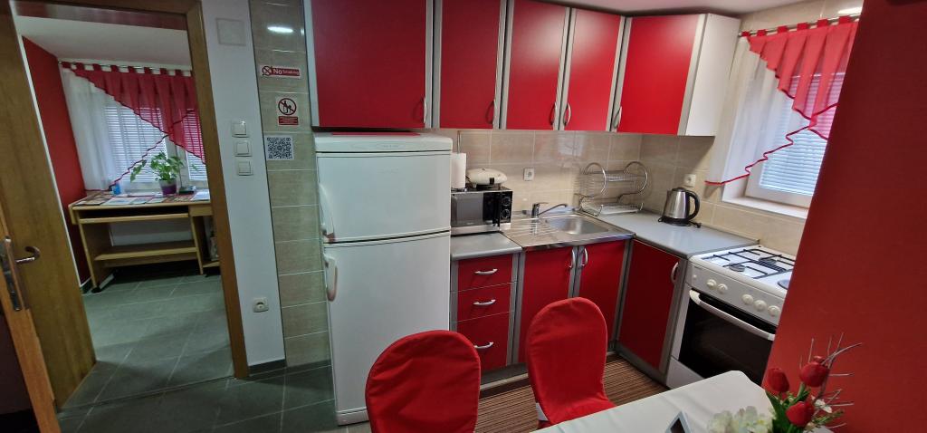 W pełni wyposażone apartamenty w centrum Bjelovar pod adresem Antuna Mihanovica 41. Bezpłatny szybki internet, podwórko, grill, bezpłatny parking na podwórzu, typ zamknięty. Do dyspozycji gości altana ogrodowa z możliwością ustawienia 8 krzeseł i stołu. Apartamenty wyposażone są w centralne ogrzewanie grzejnikowe, a każdy apartament posiada klimatyzację. Całość oświetlenia stanowi diody LED. W łazienkach znajdują się pralki. Apartamenty wyposażone są w kompletne przybory kuchenne. Każdy apartament posiada dwa pokoje i pokój dzienny. Czekamy na Państwa przyjazd.