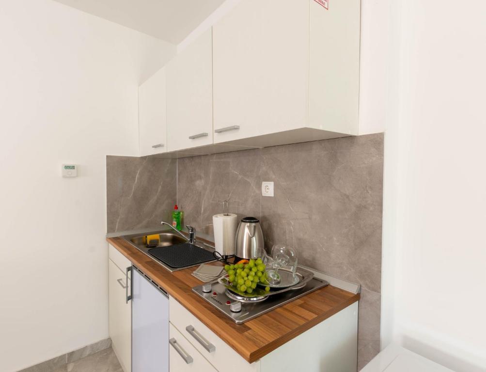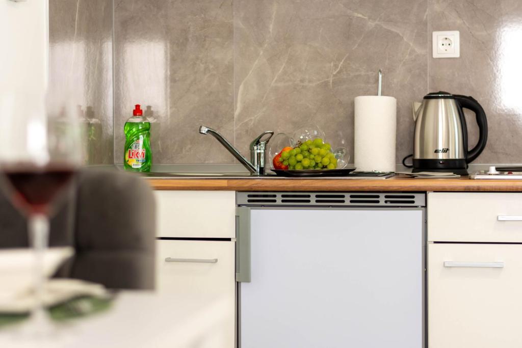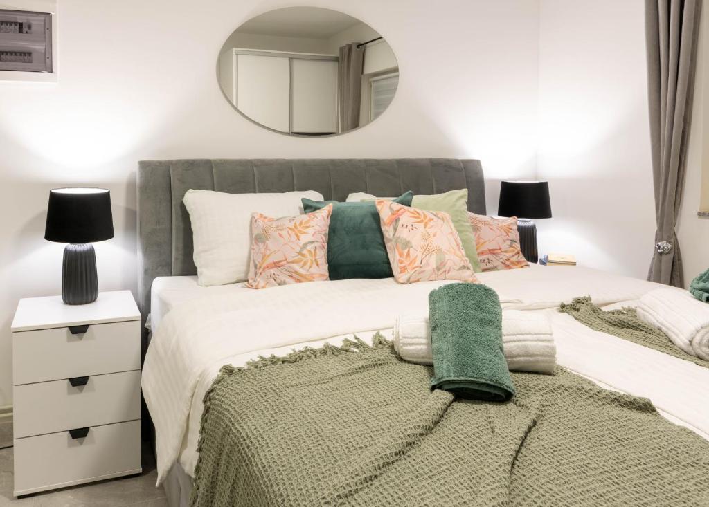 Dom składa się z dwóch apartamentów typu studio. Każdy apartament typu studio składa się z 1 sypialni z w pełni wyposażoną kuchnią, 1 łazienki, pościeli, ręczników, mydeł, żeli pod prysznic, szamponów, telewizora z płaskim ekranem, wspólnego tarasu do picia kawy i dużego ogrodu. Mieszkanie położone jest w spokojnej uliczce oddalonej o ok. 500 m od centrum miasta i jest wkomponowane w działkę. Dziedziniec i duży ogród oddzielają apartament od drogi, co pozwala na spokojny pobyt w apartamencie i na tarasie. Na podwórzu znajduje się parking dla samochodów osobowych.