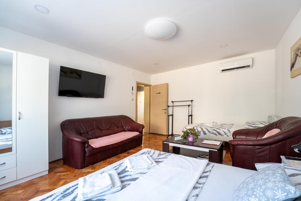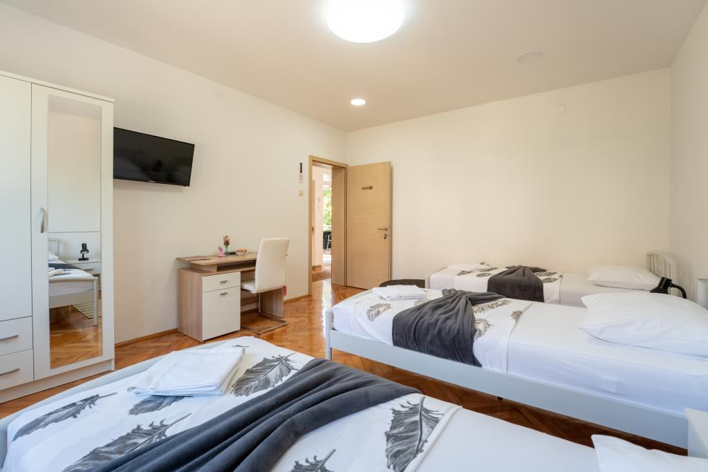 Pokoje Matic A. Mihanovića 13C, w pełni i nowocześnie urządzone pokoje w centrum Bjelovar, naprzeciwko szpitala. Darmowa sieć WIFI, DARMOWY parking, bezpłatny grill, pierwsza strefa miejska. Każdy pokój posiada 3 łóżka i oddzielną łazienkę z toaletą, kuchnię, telewizor z płaskim ekranem LED, a wszystkie pokoje wyposażone są w oświetlenie LED. Bezpłatny dostęp do Internetu WIFI. Łazienki wyposażone są w pralkę. W domu znajduje się bezpłatny prywatny, otwarty parking. Pokoje wyposażone są w klimatyzatory, które są bezpłatne. Ogrzewane są centralnym ogrzewaniem grzejnikowym i chłodzone klimatyzacją. Bezpłatne korzystanie z grilla, dla naszych gości przygotowaliśmy altankę z możliwością skorzystania z 9 krzeseł i stołu. Obiekt wyposażony jest w jacuzzi oraz saunę na podczerwień. Używanie za specjalną zgodą i dodatkową opłatą. Jesteśmy zarejestrowani jako placówka bike&bad i dysponujemy 5 rowerami i 3 hulajnogami. Jeśli przyjedziesz do Bjelovar komunikacją miejską, odbierzemy Cię i zawieziemy do naszego obiektu bezpłatnie. Witamy u nas!