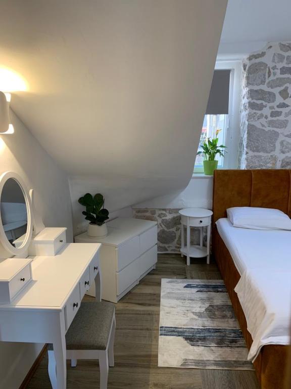 Stary dom to idealne rodzinne miejsce na cieszenie się gorącymi letnimi dniami i świeżym powietrzem. Mieszkanie składa się z trzech przestronnych pokoi, z których każdy posiada własną łazienkę, a także komfortowego salonu oraz w pełni wyposażonej kuchni z jadalnią. Dodatkowo goście mają do dyspozycji dodatkowe udogodnienia: piękny balkon z widokiem na morze, idealny do wypicia porannej kawy lub wieczornego drinka, a także taras i kominek, które pozwolą na przyjemne spotkania towarzyskie wieczorem. Nieruchomość znajduje się zaledwie 5 minut spacerem od pięknej kamienistej plaży w centrum miasta, ponadto w pobliżu znajduje się piaszczysta plaża, która znajduje się zaledwie 15 minut spacerem od domu. Stary dom to idealne miejsce na relaks i cieszenie się wszystkim, co Blace ma do zaoferowania.