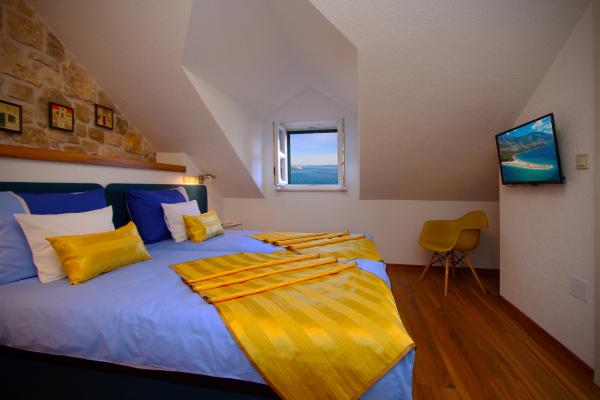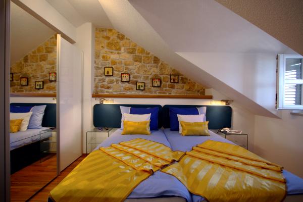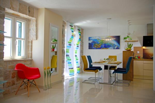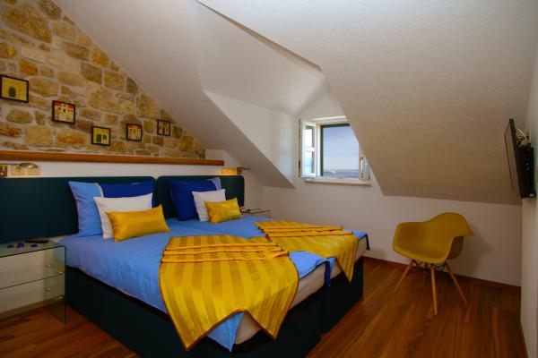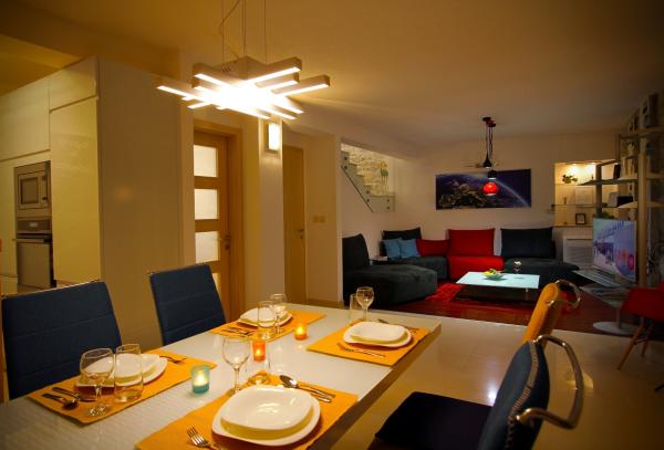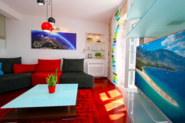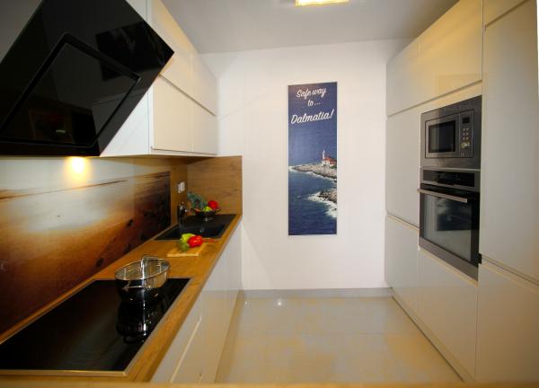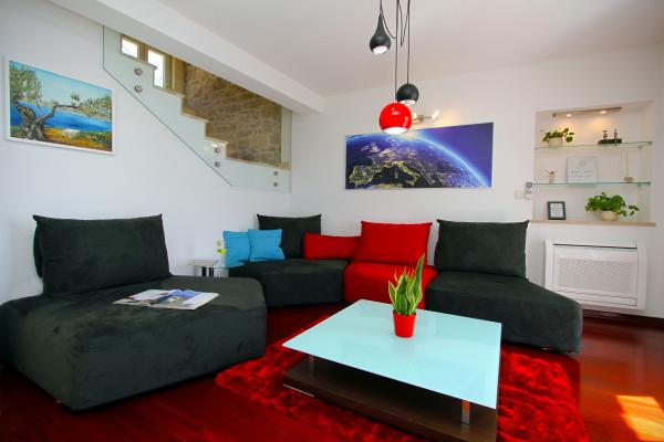 Na Twoje niezapomniane wakacje przygotowaliśmy luksusowy apartament dwupoziomowy „ALLURE” - całkowicie nowy i nowoczesny apartament w atrakcyjnym dalmatyńskim domu. Położony jest w wyjątkowej lokalizacji, w bezpośrednim sąsiedztwie morza i centrum miasta. Ciesz się doskonale wyposażonym apartamentem z dwoma balkonami i pięknym widokiem na morze. Luksusowy apartament dwupoziomowy o powierzchni 100 m2 oferuje zakwaterowanie dla 4-5 osób. Na pierwszym piętrze znajduje się przestronny salon, kuchnia i jadalnia, dwa balkony z widokiem na morze oraz duża łazienka. Na drugim piętrze znajdują się dwie sypialnie z łazienkami i także wspaniałym widokiem na morze. Nie możemy się doczekać Twojego przybycia!