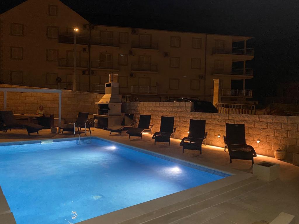 W pełni wyposażone i nowoczesne apartamenty w Bol, 100 m od centrum i 200 m od pierwszej plaży. Apartament Lux posiada dwie oddzielne sypialnie, dwie łazienki, dwa tarasy (jeden z widokiem na morze), dużą kuchnię, jadalnię, klimatyzację, telewizję satelitarną, bezpłatny dostęp do Internetu. Przed domem jest ogród i grill dla ciebie w służbie.