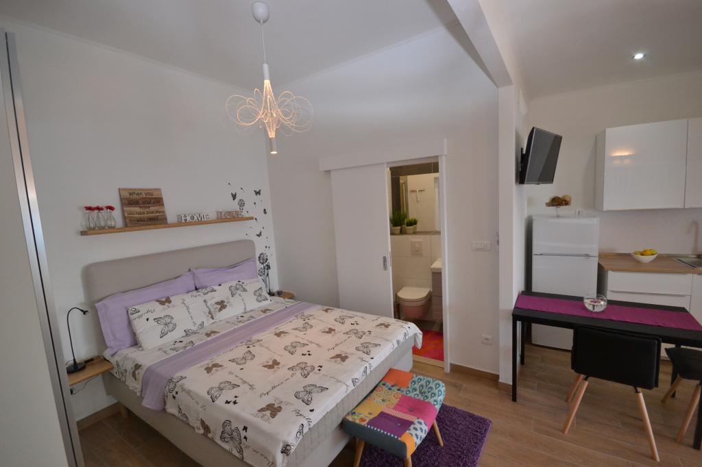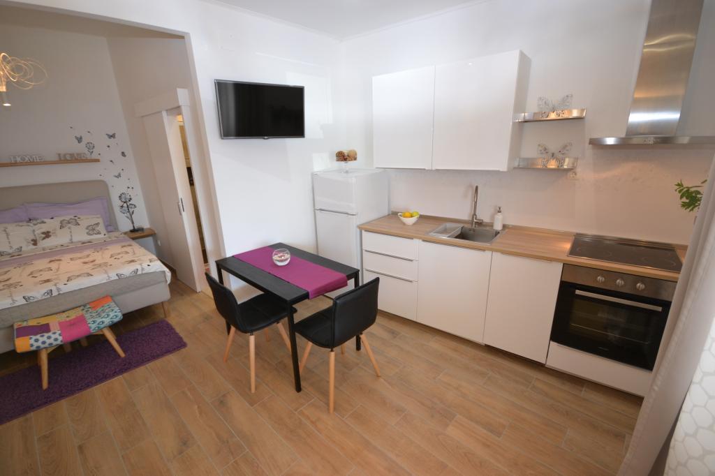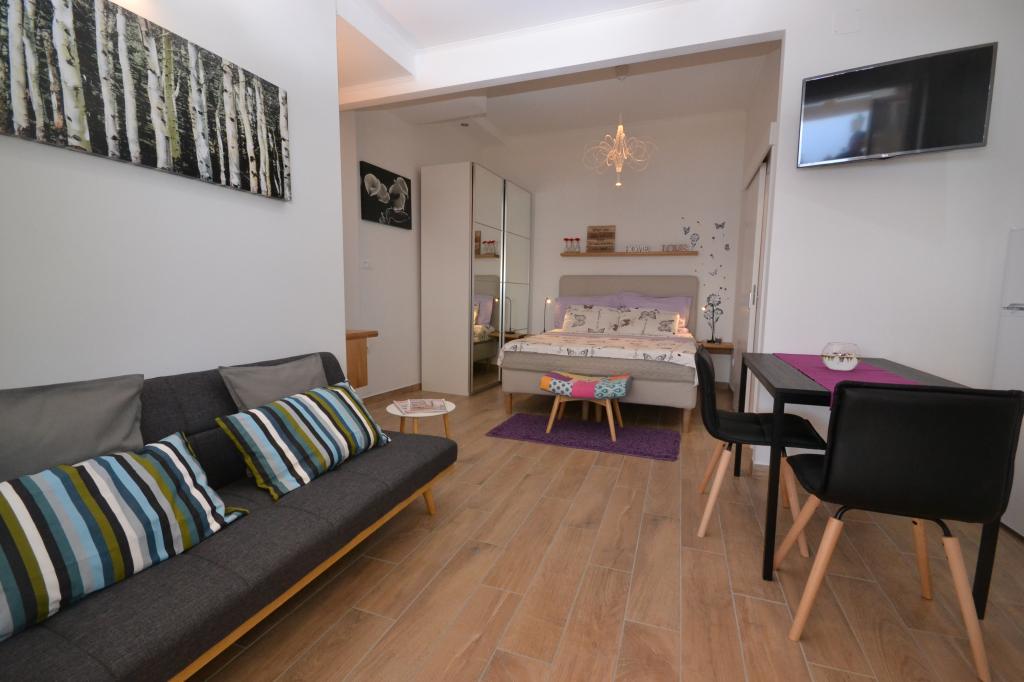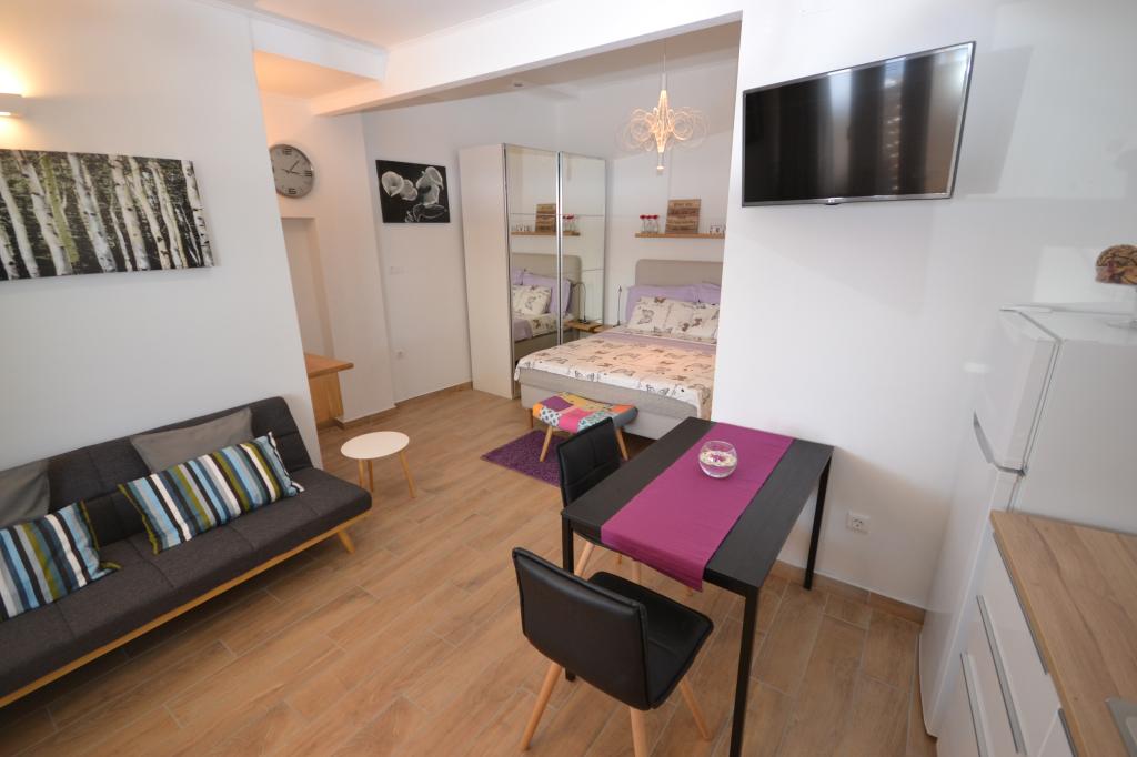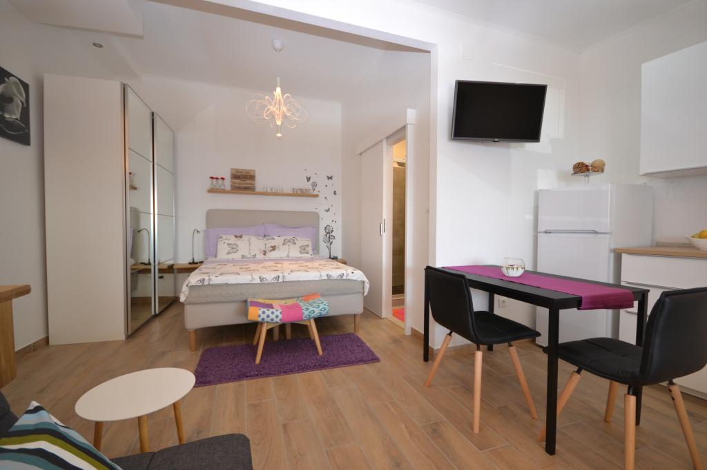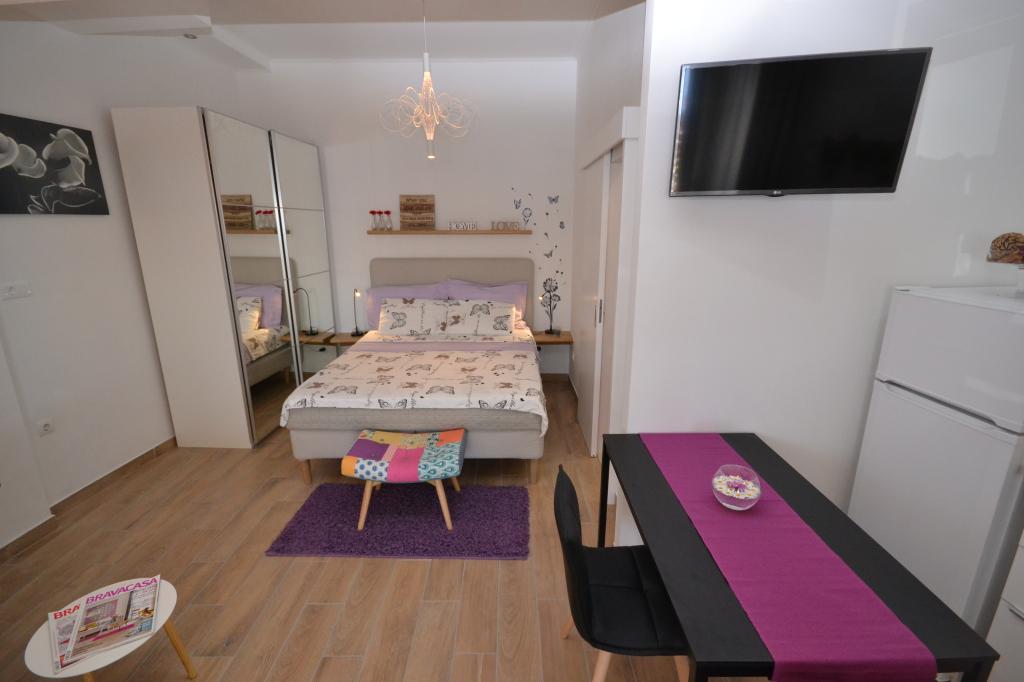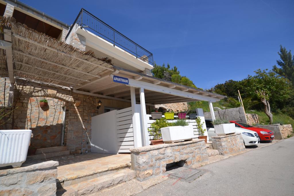 W pełni umeblowane apartamenty w małej wiosce pięć kilometrów od Bol, z pięknym widokiem na Brac-Hvar kanału, pięć minut spacerem od pięknej, piaszczystej plaży, w cieniu starych sosen.