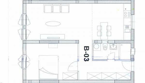Apartament dla dwóch osób z dwoma dostawkami (50 m2)