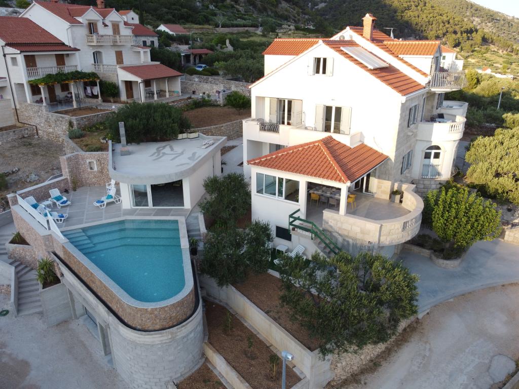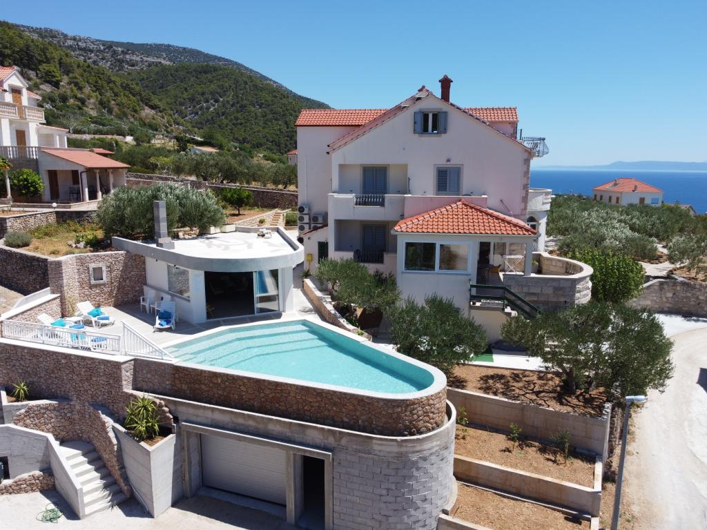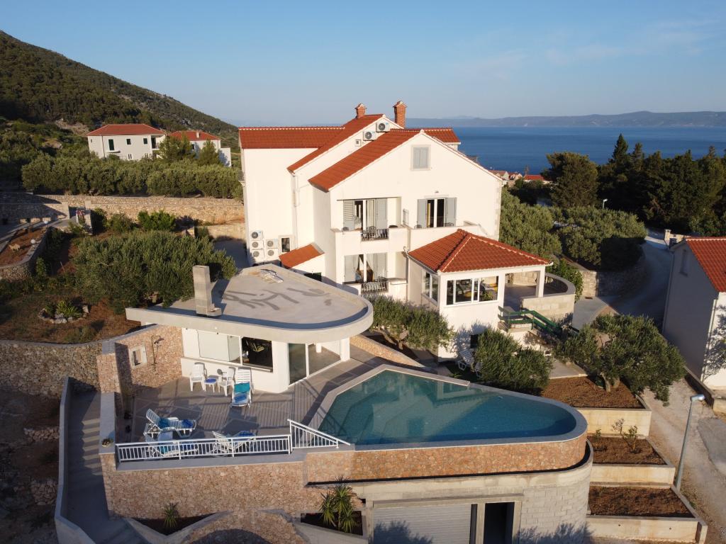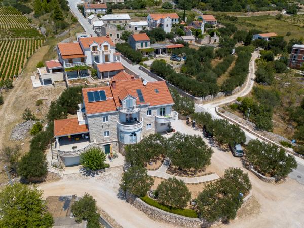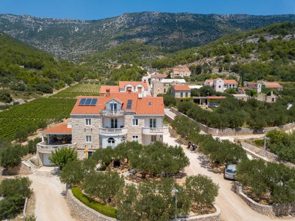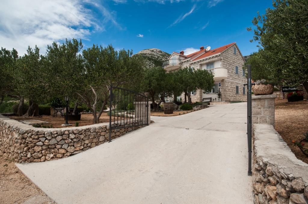 Zapraszamy do nowo wybudowanej willi Franka, tradycyjny kamień z Brac. Villa jest otoczony przez piękne ogrody i gaje oliwne i znajduje się na wzgórzu, skąd roztacza się wspaniały widok na plażę Zlatni Rat, Bol i Hvar. Do centrum można dotrzeć pieszo w zaledwie 15 minut. Komfortowe zakwaterowanie Dokończymy krajowym gastronomii i eko rodziny produktów Cvitanic. Oferujemy również parking dla samochodów, a także przechowywania swój sprzęt surf i rowery.