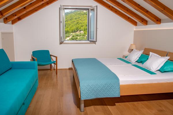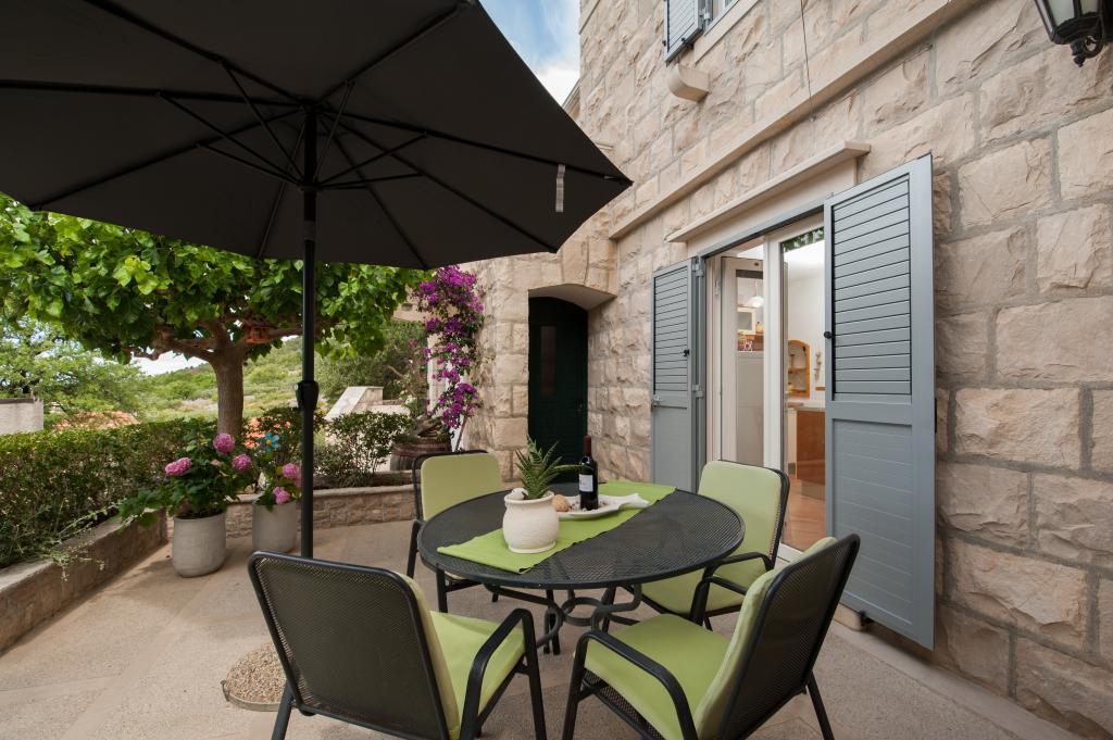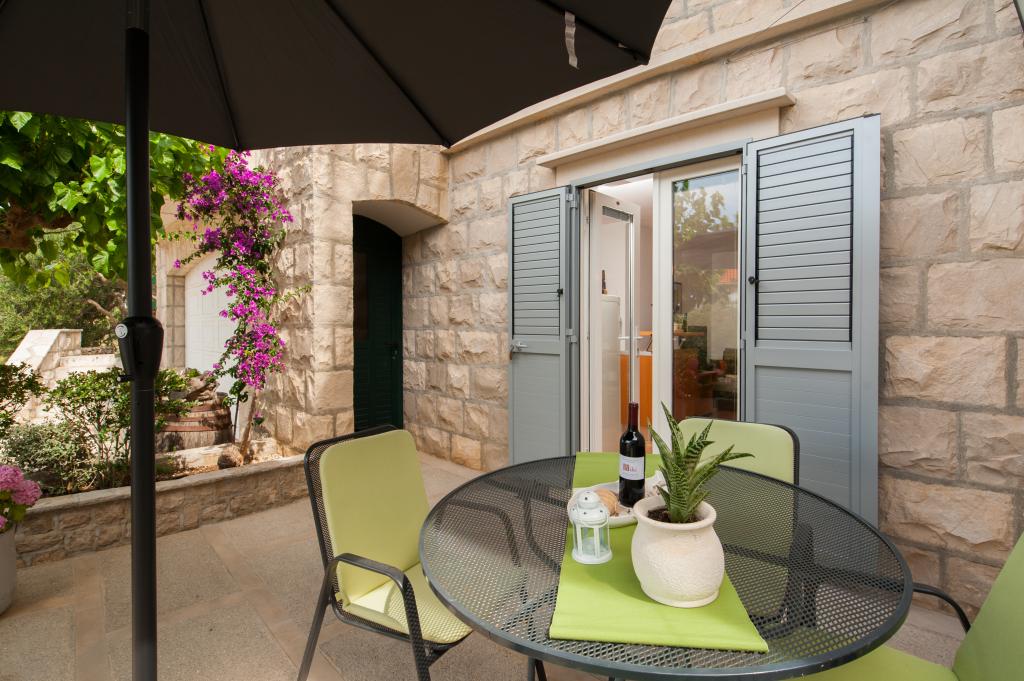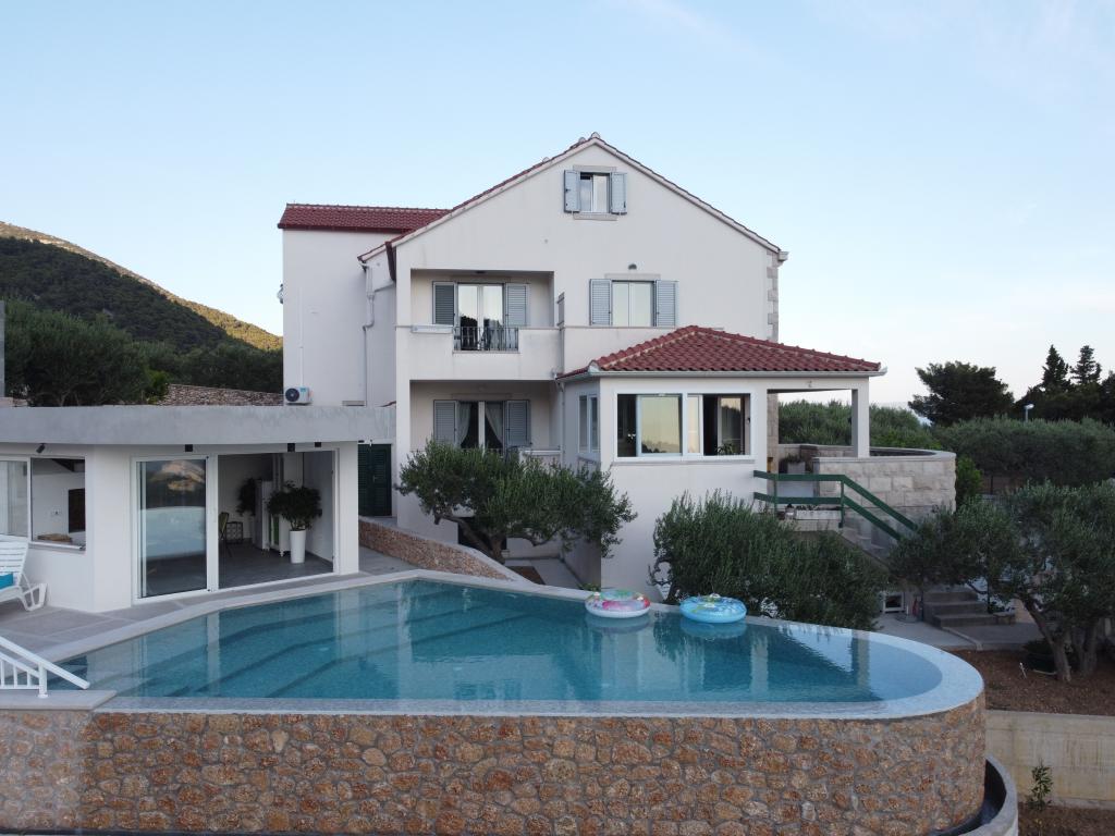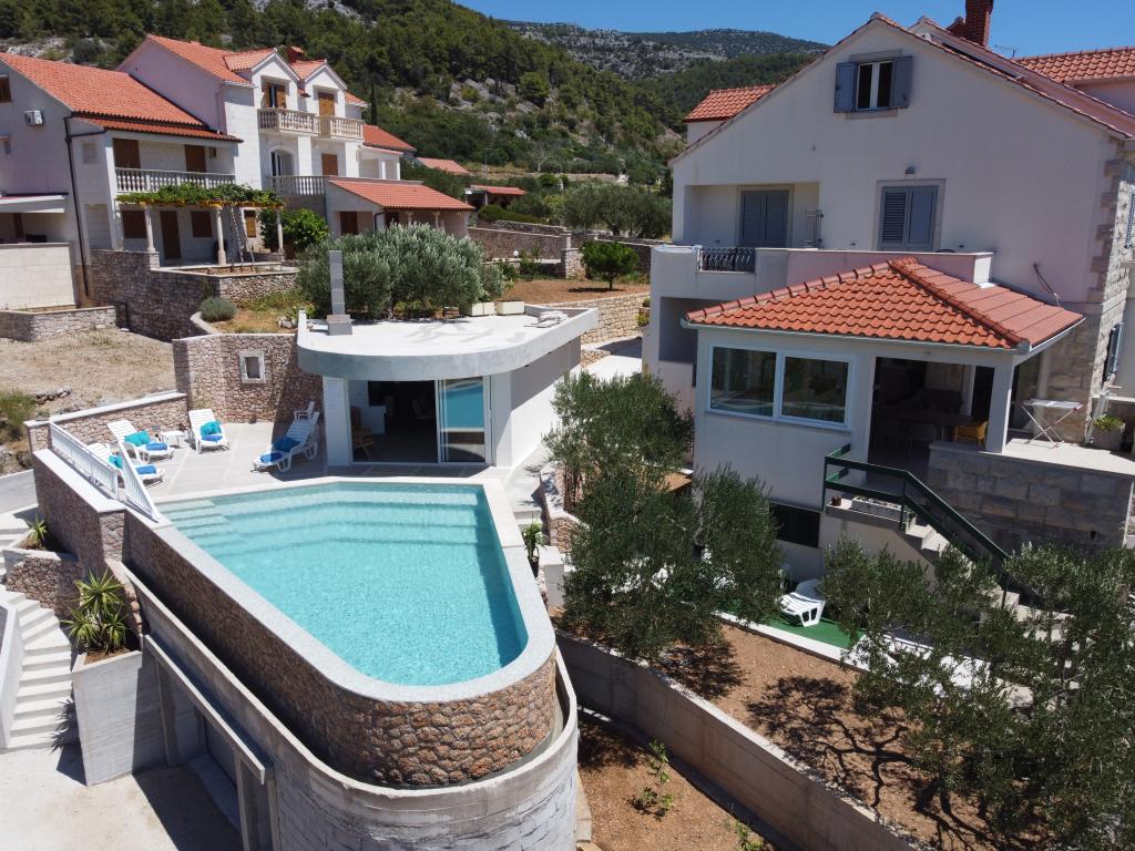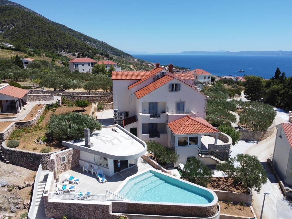 Zapraszamy do nowo wybudowanej willi Franka, tradycyjny kamień z Brac. Villa jest otoczony przez piękne ogrody i gaje oliwne i znajduje się na wzgórzu, skąd roztacza się wspaniały widok na plażę Zlatni Rat, Bol i Hvar. Do centrum można dotrzeć pieszo w zaledwie 15 minut. Komfortowe zakwaterowanie Dokończymy krajowym gastronomii i eko rodziny produktów Cvitanic. Oferujemy również parking dla samochodów, a także przechowywania swój sprzęt surf i rowery.