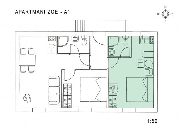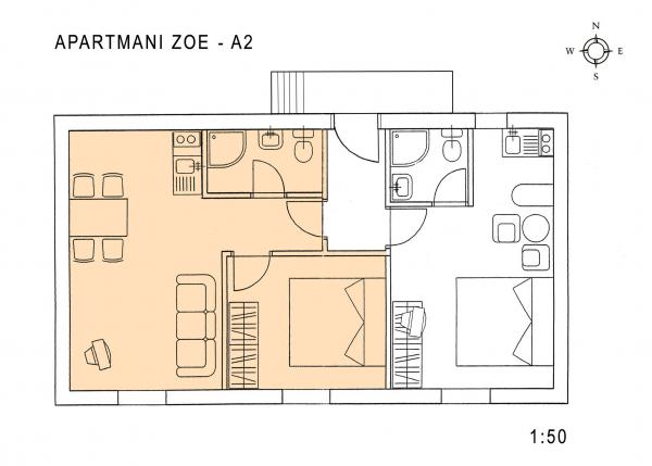 Apartament dla dwóch osób z dwoma dostawkami (36 m2)