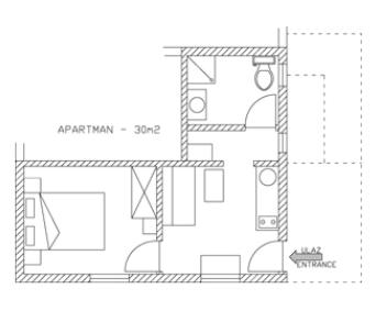 Nowocześnie urządzony apartament, w otoczeniu ciszy, sosny, kwiaty i morze. Mieszkanie znajduje się na parterze, składa się z pokoju dziennego z aneksem kuchennym, sypialnia z łóżkiem typu queen i łazienkę. Z przodu znajduje się duży taras otoczony zielenią i ogród z leżakami, aby odpocząć i obejrzeć. Ridulin willa znajduje się na drodze Supetar - Marina, 5 km od portu promowego w Supetar i położony jest 40 m od morza i plaży w Splicie i wielu 5 minut spacerem do centrum miasta. Mieszkanie jest idealne dla par szukających wypoczynku dla duszy i ciała, aby naładować baterie i ożywić go.