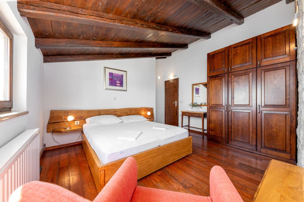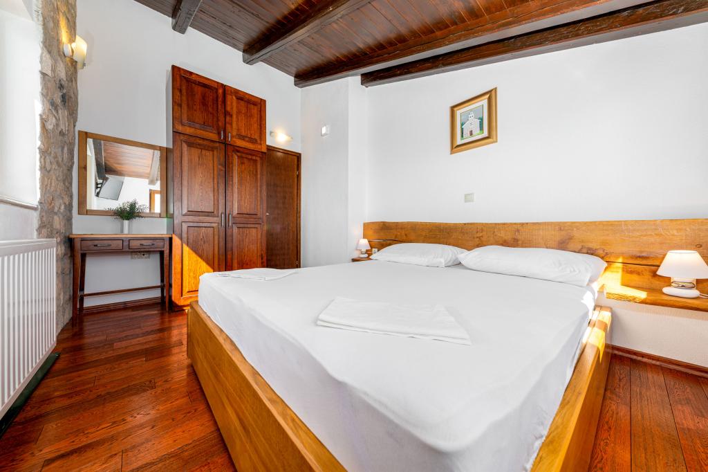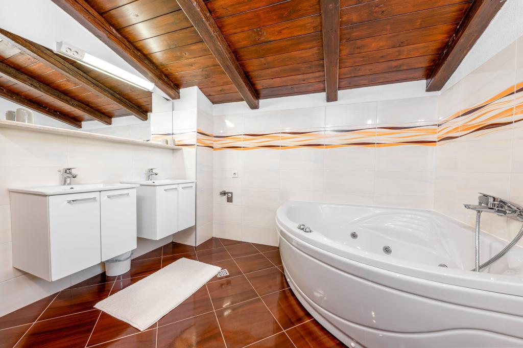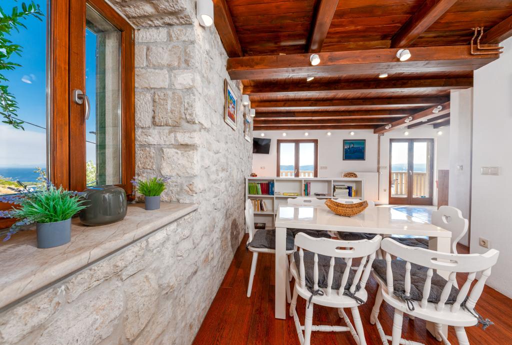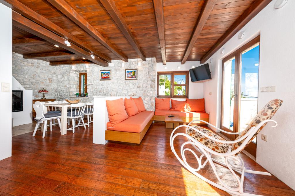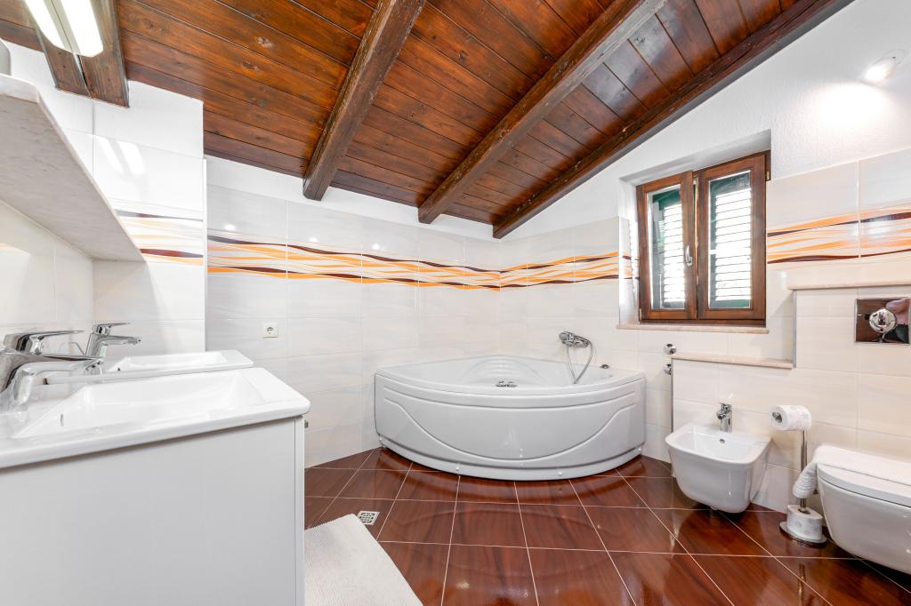 Zapraszamy do naszego przestronnego i urokliwego apartamentu, położonego w prywatnym domu, który składa się z trzech apartamentów – idealnego wyboru na spokojny i relaksujący wypoczynek w prawdziwie dalmatyńskiej atmosferze. Apartament o powierzchni 115 m² oferuje wszystko, czego potrzeba do przyjemnego pobytu. Składa się z dwóch wygodnych sypialni, w pełni wyposażonej kuchni połączonej z przestronnym salonem, dwóch łazienek (w tym jednej z wanną z hydromasażem) oraz dodatkowej, oddzielnej toalety. Rustykalny wystrój i starannie dobrane detale tworzą ciepłą atmosferę i autentyczny dalmatyński klimat. Dom położony jest na kaskadowym terenie, a schody prowadzą do wspólnego basenu. Basen znajduje się na przestronnym tarasie z leżakami i parasolami, idealnym do opalania się i podziwiania widoków. Ze względu na schody i ukształtowanie terenu, apartament nie jest odpowiedni dla osób z niepełnosprawnościami ani osób o ograniczonej sprawności ruchowej. Prywatny parking znajduje się tuż obok domu (co jest dużym udogodnieniem w miesiącach letnich). Czekamy na Państwa przyjazd!