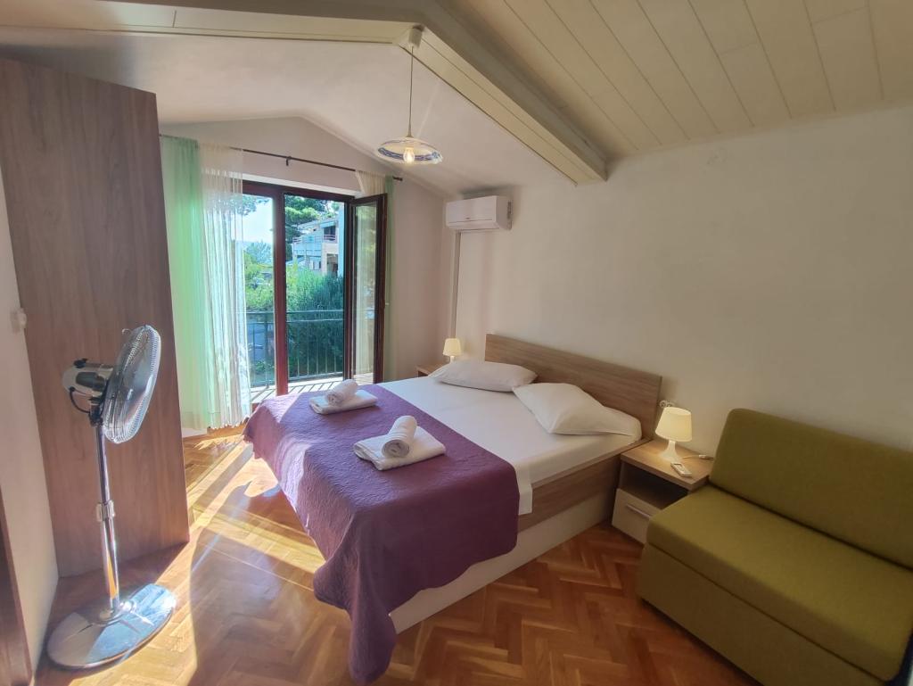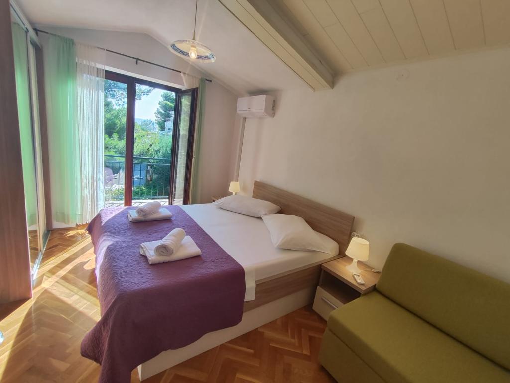 Nasze apartamenty położone są w spokojnej części Breli, idealnej na rodzinne wakacje i pełen relaks. Położone wśród pachnących sosen, oferują wspaniałe widoki na krystalicznie czyste Morze Adriatyckie i górę Biokovo. Apartamenty są nowocześnie wyposażone. W każdym pokoju znajduje się prywatna łazienka, balkon, klimatyzacja, ręczniki i pościel. W pełni wyposażona kuchnia (kuchenka, lodówka, komplet naczyń i sztućców) pozwala na przygotowywanie posiłków w komfortowej, domowej atmosferze. Każdy apartament posiada przestronny taras, TV, WiFi, parking oraz możliwość korzystania z grilla, co pozwoli na spędzenie niezapomnianych wieczorów nad morzem. Dom położony jest na wzgórzu, zaledwie 100 metrów od kamienistych plaż, idealnych do pływania i opalania. Brela znana jest ze swojego naturalnego piękna, długiej promenady wzdłuż wybrzeża i legendarnego Kamienia Brela. Ponadto w pobliżu znajdują się liczne restauracje serwujące lokalne specjały, kawiarnie nad morzem oraz miejsca do uprawiania różnych sportów i rekreacji, np. turystyki pieszej, kolarstwa i sportów wodnych. ️