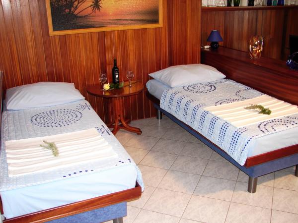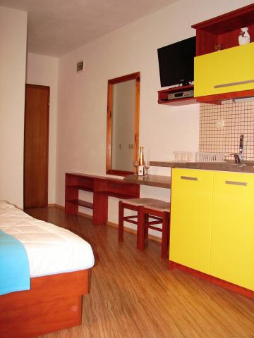 Położony w cichej okolicy, w odległości zaledwie 10 metrów od morza, znajdują się apartamenty Bikin. Wszystkie apartamenty oferowane mają wszystko, co potrzebne do komfortowego pobytu: w pełni wyposażoną kuchnię, telewizję satelitarną, sejf, bezpłatny klimatyzację, bezpłatny dostęp do Internetu Wi-Fi. Śniadanie serwowane jest tylko w pokoju. Ogród z grillem jest dostępna. Parking jest bezpłatny w pobliżu. Najbliższy supermarket znajduje się w odległości 100 metrów od hotelu, restauracja z kuchnią mediteranskm 400m. Pralka i żelaza są dostępne za dodatkową opłatą.