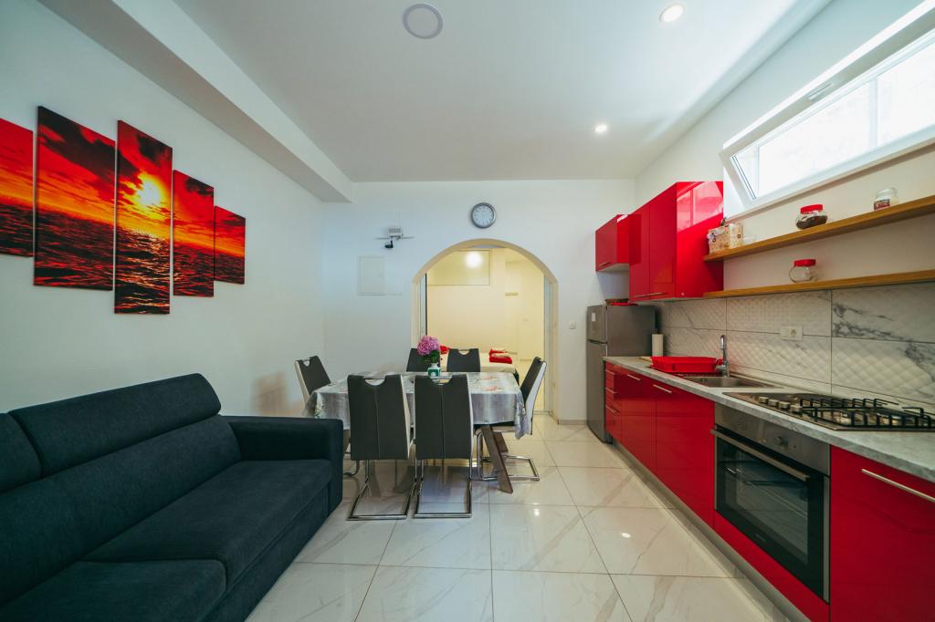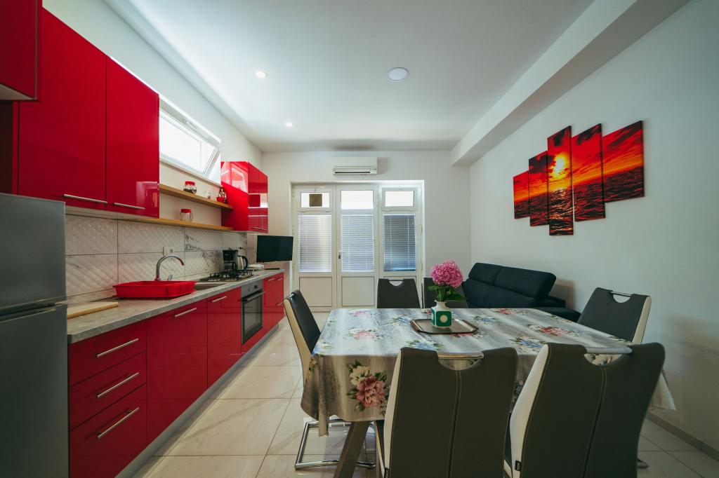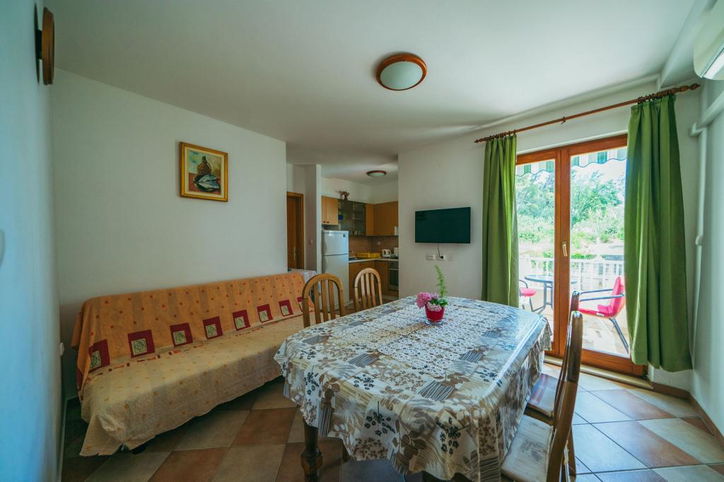 W pełni umeblowane mieszkanie w spokojnej dzielnicy Brela (w środku). Położony drugim rzędzie od morza. Obiekt znajduje się 5 minut spacerem do plaży i 10 minut od centrum miasta. Supermarket, apteka, hotele, wszystko znajduje się w pobliżu.