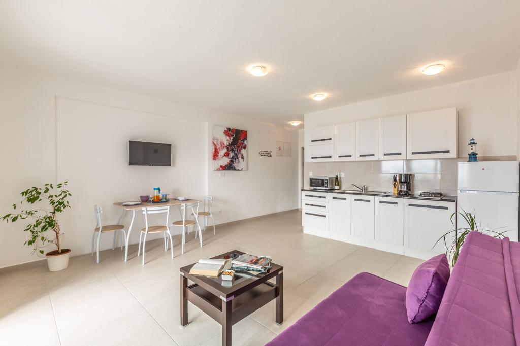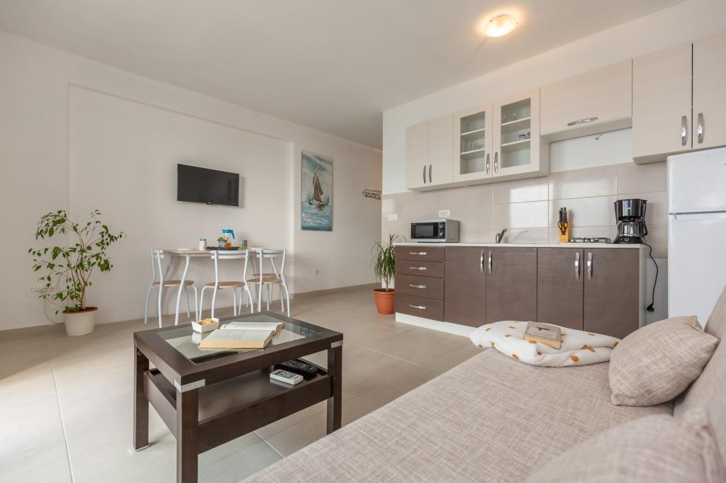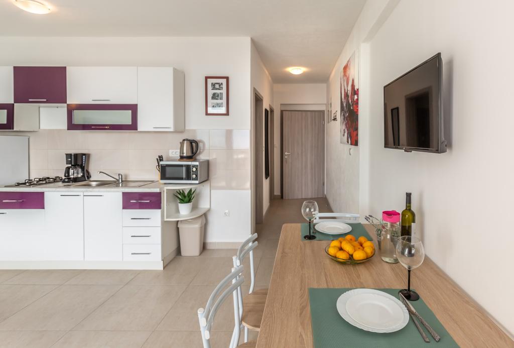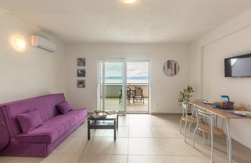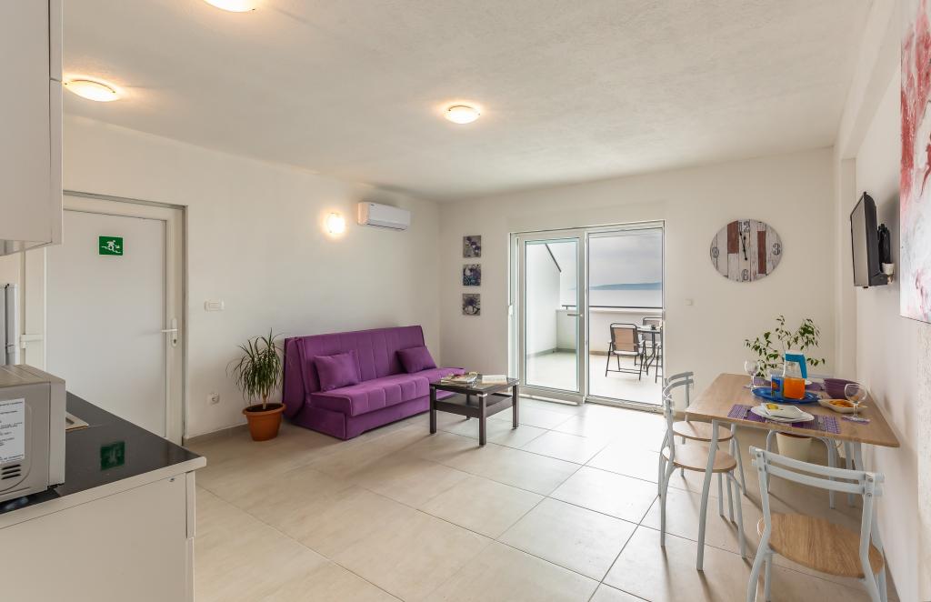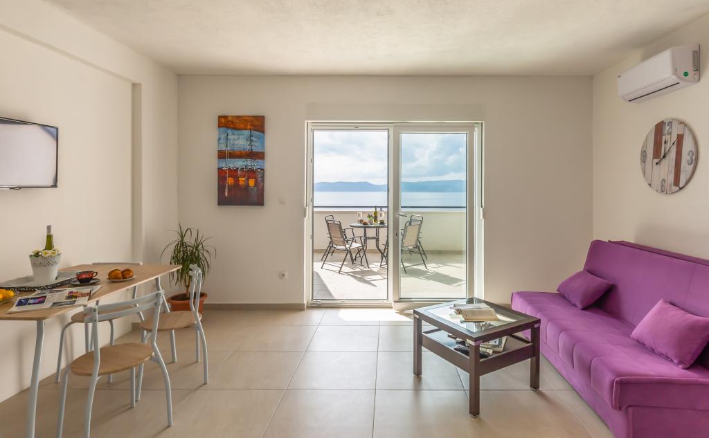 Apartamenty Eol znajdują się w miejscowości Brela, w żupani splicko-dalmatyńskiej, obok plaż Jakiruša i Podcrkavlje. Goście mają do dyspozycji bezpłatny bezprzewodowy dostęp do Internetu oraz prywatny parking. Wszystkie apartamenty mają otwarty widok na morze, które jest oddalone o 30 m w linii prostej, klimatyzację, łazienkę, telewizor z płaskim ekranem, szafę, salon, wyposażoną kuchnię, sypialnię i duży taras z widokiem na morze. Plaża znajduje się 70-80 m od obiektu, a plaża dla psów (Stomarica) ok. 800 m od obiektu. Budynek został wybudowany w 2019 roku, od tego czasu jest wynajmowany turystom i znajduje się w niezwykle spokojnej części Breli w pobliżu plaży Vruja. W bezpośrednim sąsiedztwie Breli znajduje się Park Przyrody Biokovo z promenadą Skywalk, z której roztacza się panoramiczny widok na wszystkie wyspy środkowej Dalmacji. W pobliżu znajduje się rzeka Cetina z raftingiem, canyoningiem, tyrolką i terenami piknikowymi z wysokiej jakości restauracjami.