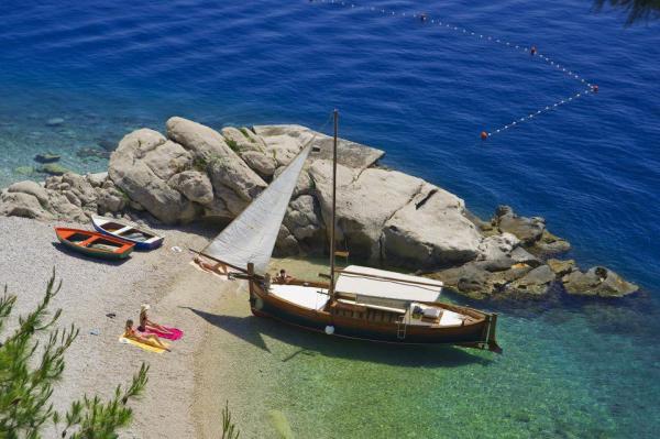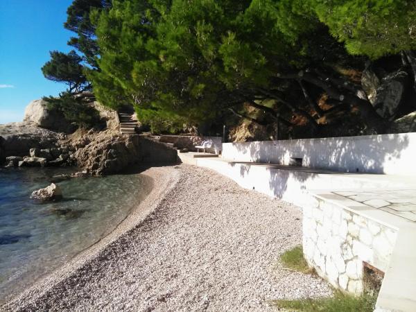 Apartament znajduje się w spokojnej zatoce Jakiruša od plaży niecałe minut, 10m npm, otoczone gęstym sosnowym lesie, w nienaruszonej przyrody z pięknym widokiem na wyspy Brac i Hvar. Na pobliskiej plaży można znaleźć idealne miejsce na relaks, cieszyć się dźwiękiem fal i pięknym śródziemnomorskim klimatem. Apartament znajduje się na parterze, od około 30 m2 wewnątrz i na zewnątrz taras. Z tarasu, który należy do obszarów morskich z widokiem na morze, plaże i wyspy. Studio składa się z pokoju z łóżkiem i łóżka piętrowe, łazienka i aneks kuchenny z kuchenką i lodówką i zamrażarką. Ręczniki, papier toaletowy, ręczniki kuchenne, płyn do mycia naczyń i ręczniki są wliczone w cenę. Parking, opłata klimatyczna i korzystanie z usług Wi-Fi są włączone. I pokój 1 umieszcza się na drugim piętrze, dwa pokoje posiadają osobną łazienkę oraz balkon z widokiem na morze i wyspy