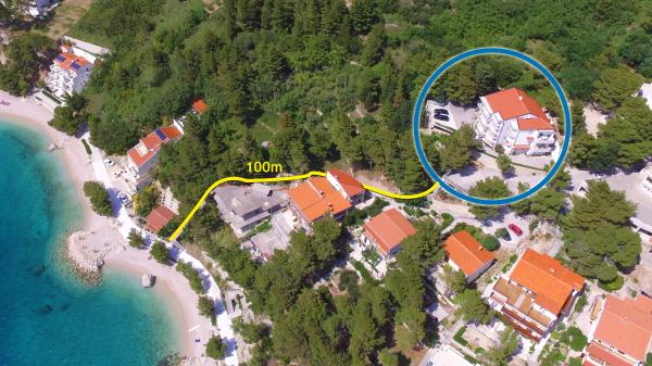 Nowo wybudowane apartamenty w spokojnej dzielnicy Brela - Jardula w pobliżu pięknych plaż. Nowoczesne apartamenty znajdują się na trzecim piętrze i zapewniają wspaniałe widoki na morze i wyspy. Obiekt znajduje się bezpłatny parking. Na plaży można dojść schodami. Do plaży jest 100 m od mieszkania.