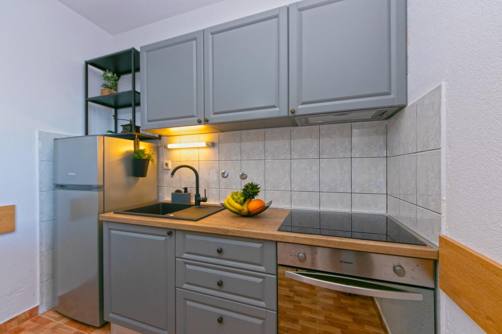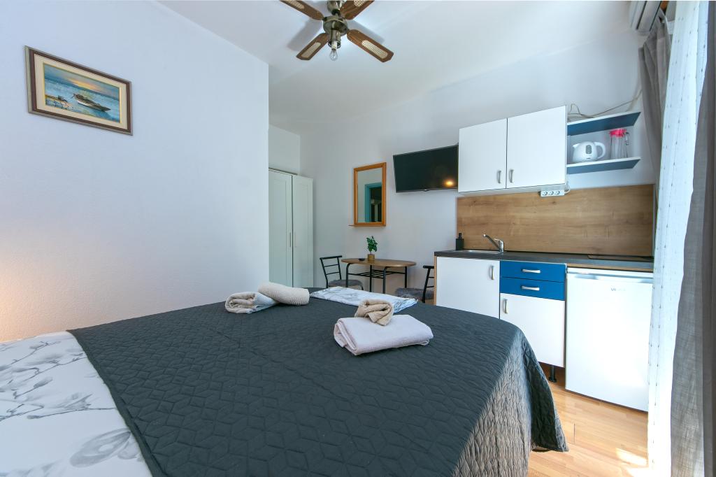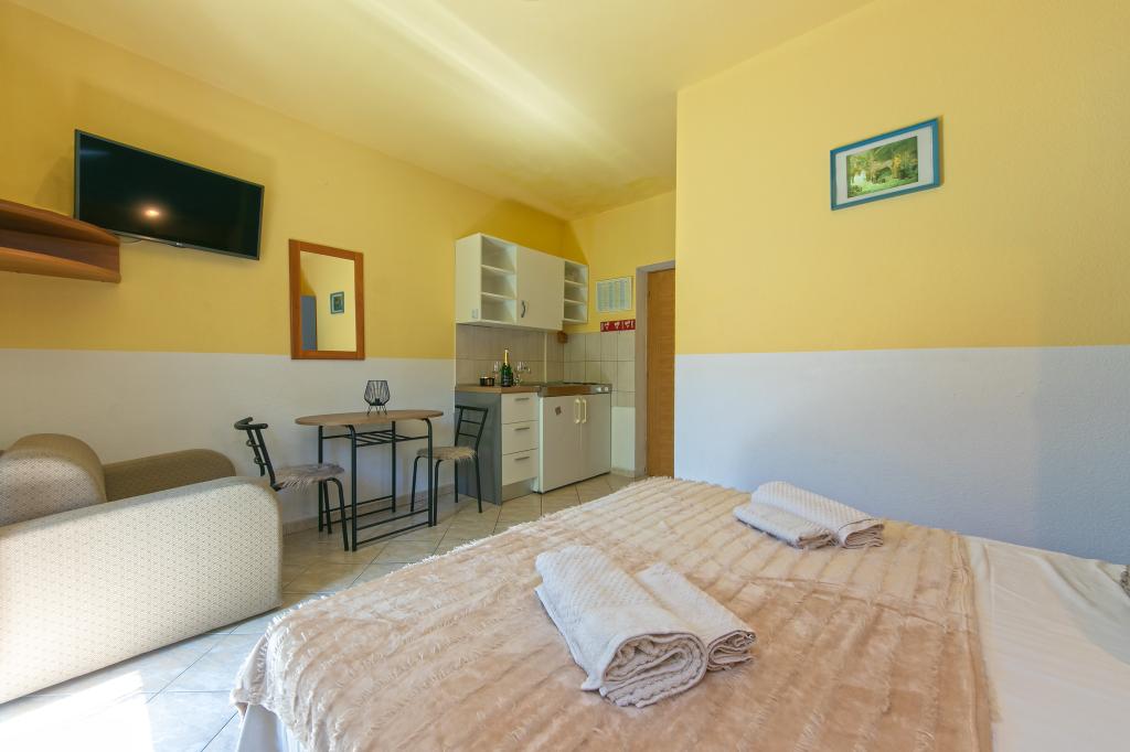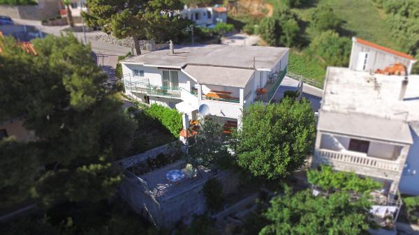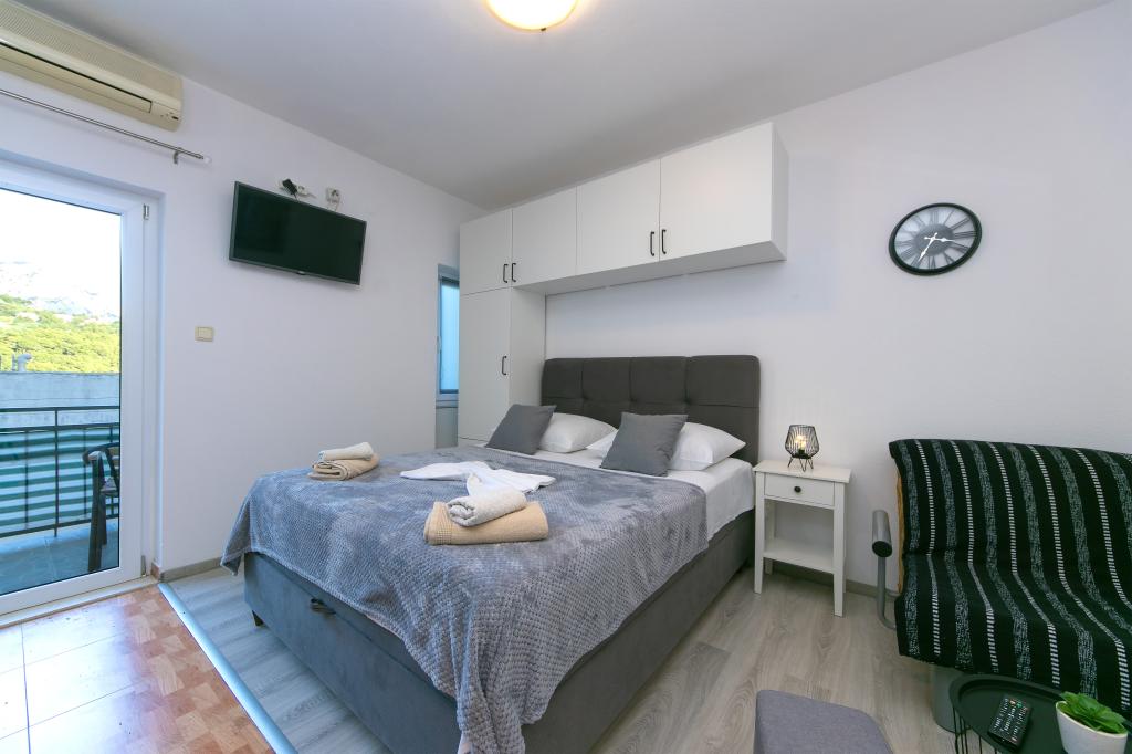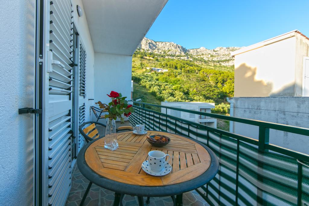Apartamenty Hrvoje znajdują się na wzniesieniu, w cichej części ulicy Stomarica. Odległość od plaży żwirowej wynosi około 3 min. spacerem lub 150 m. Po jednej stronie domu znajduje się widok na morze, a drugi ma widok na górę Biokovo. Oferta rodziny Jelčić to jakość, a goście mogą w pełni zrelaksować się w apartamentach i spędzić niezapomniane wakacje. Apartamenty zadowolą wszystkich gości, którzy chcą spędzić przyjemny urlop. Oferta zakwaterowania obejmuje apartamenty wyposażone w kuchnię, sypialnię, klimatyzację, telewizję satelitarną, łazienkę i balkony. Za domem znajduje się taras ogrodowy ze stolikami, gdzie goście mogą odpocząć, podziwiając spokojną atmosferę z widokiem na morze. Dostępne jest również korzystanie z grilla na świeżym powietrzu, ale przyjazna pani. Jelcic chętnie im pomoże. Parking jest zabezpieczony.