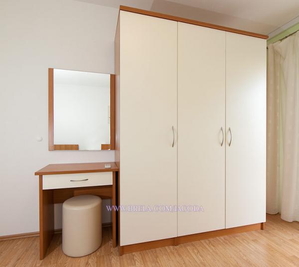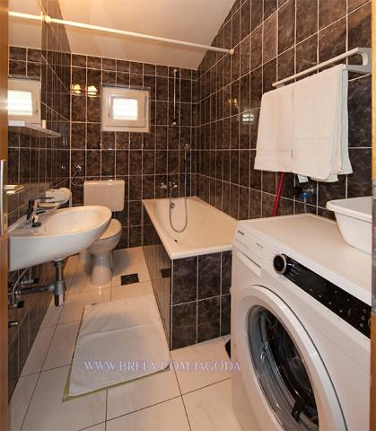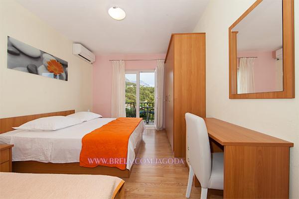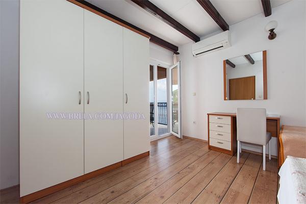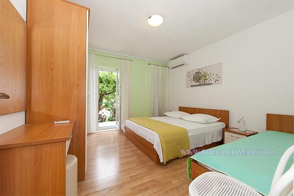Apartamenty Jagoda Klaric położone są w spokojnej części miejscowości Brela (Stomarica) kilometra i pół od centrum miasta. Z jednej strony jest widok na morze, a drugi ma widok na zboczu góry. Najbliższy supermarket znajduje się około 300 m, a odległość od plaży, która jest około 2 minut spacerem odległości (80 m). Zakwaterowanie obejmuje: Apartament 1: 60m² 20m² bakon / taras, 1 pokój trzyosobowy z balkonem (parter), 1 pokój trzyosobowy z balkonem (1 piętrze), 2 łazienki z WC, w pełni wyposażona kuchnia z jadalnią, duży taras z widokiem na morze. Maksymalna pojemność 6 osób. Apartament 2 / (Na 2 piętro): 65m² 15m², balkon / taras, 1 pokój dwuosobowy z balkonem, 2 łazienki z WC, jeden pokój trzyosobowy z balkonem, w pełni wyposażona kuchnia, jadalnia / salon z sofą i balkonem, wszystkie balkony są z widokiem na morze. Maksymalna pojemność 6 osób.