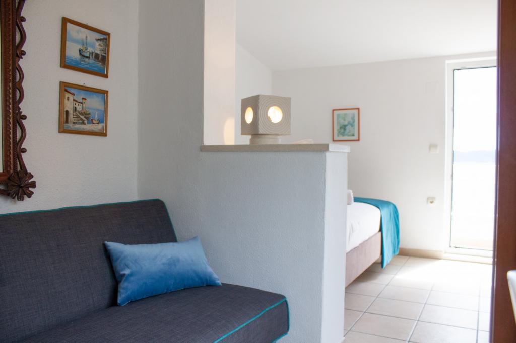 Chciałam zweryfikować negatywną opinię, którą przeczytałam poniżej. Ja jestem bardzo zadowolona z wyboru. Apartament jest dokładnie taki jak na zdjęciach. Pokoje są czyste, ściany są idealnie białe, a łóżka bardzo wygodne. Apartament jest dobrze wyposażony. Łazienka czysta i ładna. Meble są w bardzo dobrym stanie, klimatyzacja działa sprawnie. Apartament jest niewielki, ale poukładany i czysty. Do apartamentu przylega duży taras z bocznym widokiem na morze, który przez większą cześć dnia znajduje się w cieniu. Co do parkingu nie odbiega w żaden sposób od innych apartamentów w Breli. W zasadzie z Breli nie trzeba się ruszać, bo jest tu wszystko pod ręką. Chęć wyjazdu zgłaszamy właścicielowi z wyprzedzeniem i on już wszystko ogarnia z właścicielami samochodów. Do plaży jest bardzo blisko, zejście po schodkach lub na około dla gości z wózkiem. Właściciele są bardzo mili i pomocni.
