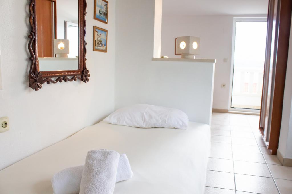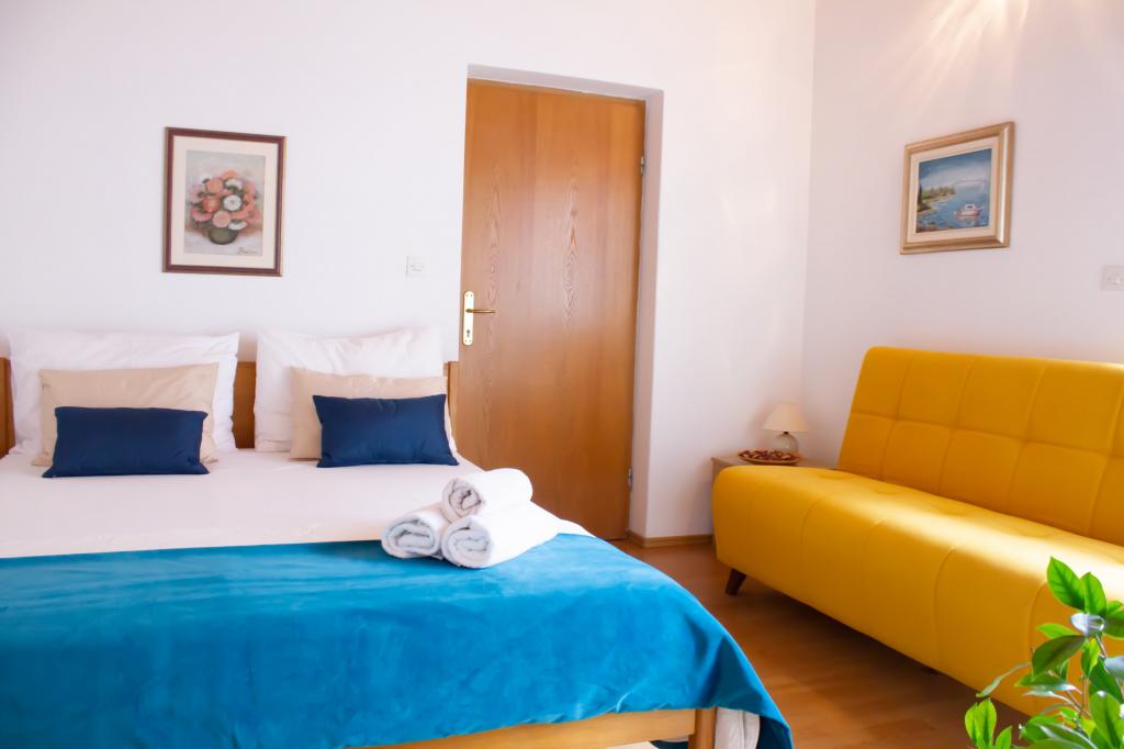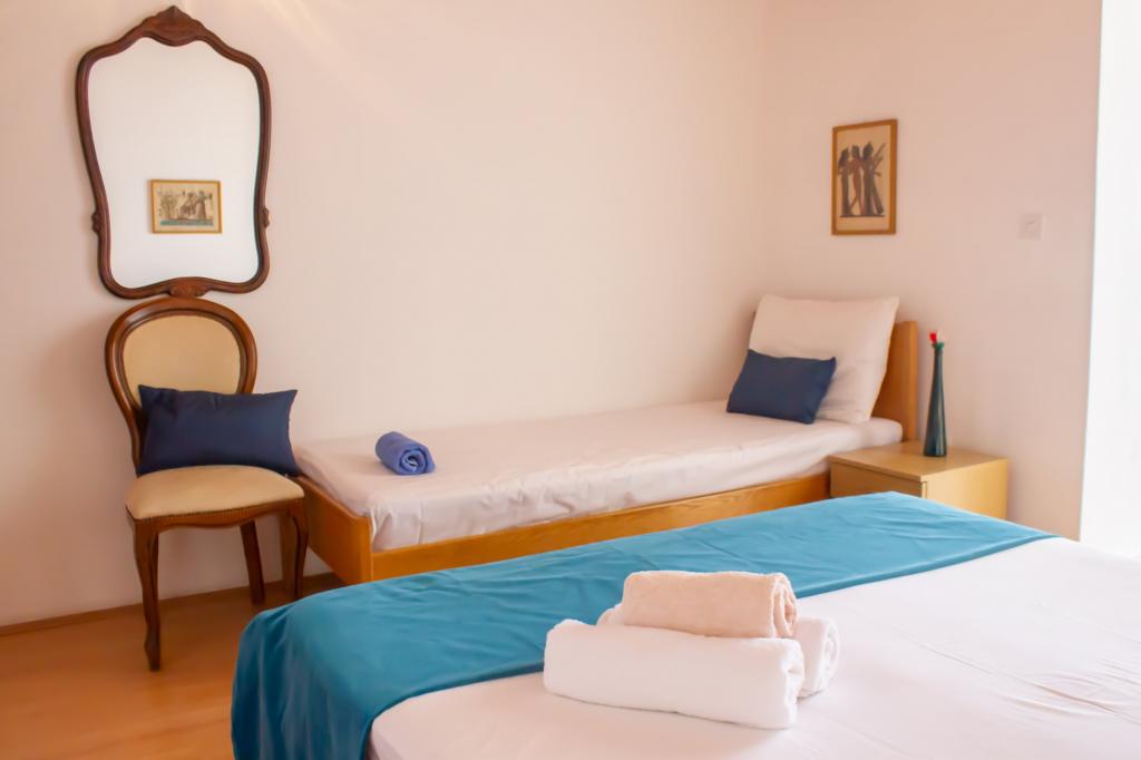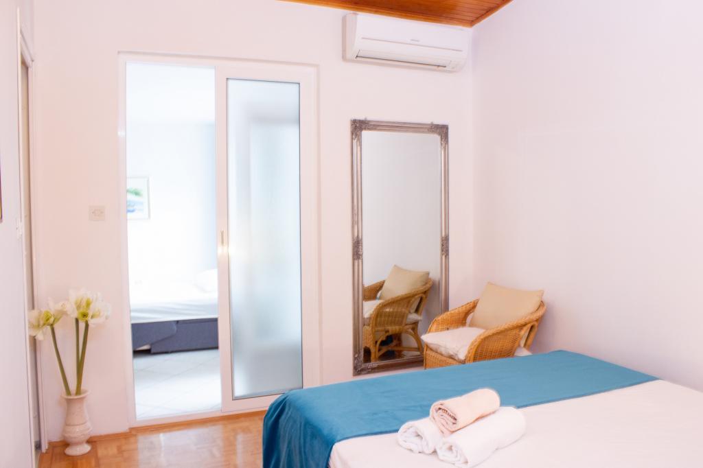 Na początek chciałbym wspomnieć, że z apartamentu do plaży jest 230 kroków. Kolejna sprawa to parkowanie. Przybyliśmy do mieszkania, a pani mówi, że zaparkujmy nasz pojazd za pojazdami innych gości. Na moje pytanie, co jeśli ta osoba, którą zaparkowaliśmy, musi wyjść samochodem, odpowiada, że zadzwoni do nas, aby przestawić jej samochód, aby inni goście mogli wysiąść. Gorszący. Kolejną niedopuszczalną rzeczą jest wejście gospodarza do apartamentu pod naszą nieobecność, oczywiście weszli sprawdzić czy działa klimatyzator bo to jest karalne. Mieszkanie jest na poddaszu i robi się strasznie gorąco w środku, więc klimatyzacja jest konieczna. Zostawiliśmy włączony klimatyzator na 2 godziny, kiedy nas nie było, a pani przyszła nas ostrzec, że nie powinniśmy tego robić, ponieważ weszła do mieszkania, gdy nas nie było, aby sprawdzić. Sam klimatyzator działa słabo, tzn. obniżenie temperatury o 2-3 stopnie zajmuje godzinę. Klimatyzację też czuć bo zbyt drogo przed sezonem kupić spray za 10 euro i wyczyścić klimatyzację. Drzwi balkonowych nie da się do końca zamknąć bo są zepsute, pani oczywiście pytała dlaczego nie były do końca zamknięte jak była na patrolu pod naszą nieobecność. W łazience nie ma ani okna, ani wentylatora, ale dzięki Bogu ma na suficie podłogę statku, co daje się odczuć po jej stęchliznie. Kabina prysznicowa przecieka na podłogę, ponieważ uszczelki wokół kabiny nie są dobre. Szafa to spuścizna z minionej epoki, a wieszaki w niej są lepkie. Nie mogłem zmyć kleju z rąk ani z koszulki, którą powiesiłem na wieszaku. Sztućce leżą w szufladzie, która nie była czyszczona od dłuższego czasu. Telewizor jest właściwie monitorem pełniącym funkcję telewizora. Zasadniczo nie polecam tego zakwaterowania, a na dowód wszystkiego mogę dołączyć zdjęcia. Postanowiliśmy wcześniej opuścić mieszkanie i poszukać bardziej odpowiedniego zakwaterowania. Gospodarze nie zdecydowali się na zwrot pieniędzy za dni, w których nie byliśmy u nich, a za cały planowany pobyt zapłaciliśmy pierwszego dnia po przyjeździe. Błąd.
