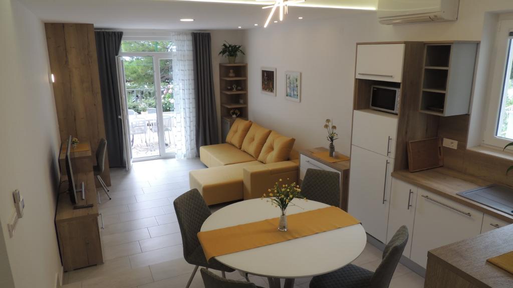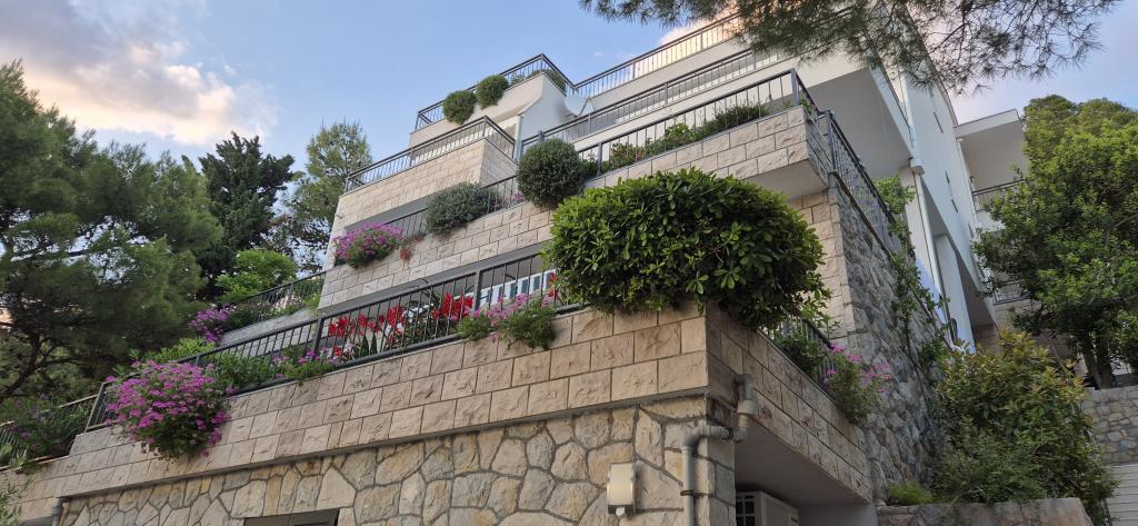Zapraszamy do spędzenia wakacji w miejscowości Brela w naszym rodzinnym domu położonym w sosnowym lesie, zaledwie kilka metrów od morza i pięknych plaż. Oferujemy zakwaterowanie w apartamentach dla dwóch lub więcej osób. Każdy apartament posiada taras lub balkon z widokiem na morze. Wszystko czego potrzebujesz to blisko - sklepy, restauracje, plaże, spacery ... Dla Twojego samochodu mamy parking obok domu. Plaża z prysznicami znajduje się pod naszym domu, aż dojdzie do własnej klatki schodowej. Główna plaża Brela, Punta Rata od naszego domu zaledwie 300 metrów. Breljanska 6 km wybrzeża znana jest z pięknych plaż, jak i dla tych, którzy chodzą całe odcinki promenady linii brzegowej - wybrać się na spacer wzdłuż morza i zapachem sosny. Jeśli nie chcesz wydawać tylko Brela należą wylegiwanie się na plażach i przechadzać się po relaksujący dźwięk fal i zapachem sosen, oferując wiele możliwości rekreacji