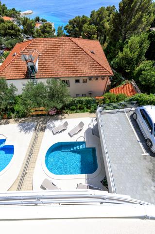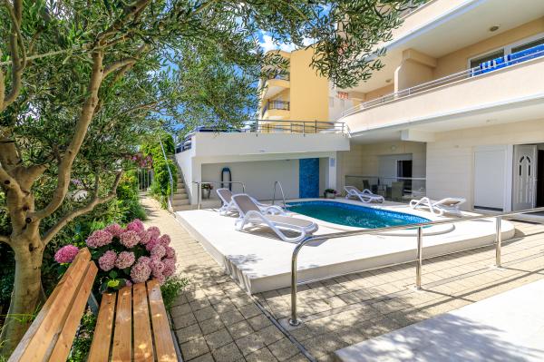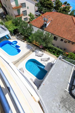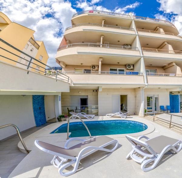 Apartamenty Ulix Brela znajdują się w Breli, małej atrakcyjnej miejscowości na Riwierze Makarskiej z wieloletnią tradycją turystyczną. W naszej ofercie znajdują się 3 apartamenty dwupokojowe 4 2 (4 osoby, z możliwością 2 dostawek), 3 apartamenty typu studio 2 1 (2 osoby, z możliwością 1 dostawki) oraz 1 apartament typu studio (2 osoby ). Wszystkie apartamenty są świeżo wyremontowane, posiadają przestronny balkon z widokiem na morze i pobliskie wyspy (z wyjątkiem apartamentu typu studio dla 2 osób, który znajduje się tuż przy basenie), a nasi goście mają także do dyspozycji bezpłatne wi-fi, parking i basen na podwórzu domu, siłownia i wspólna pralka. Znajdujemy się w spokojnej okolicy, 150 m od morza, skąd można z łatwością dojść do centrum Breli w niecałe 10 minut i do centrum Baška Voda w 15 minut. Supermarket znajduje się zaledwie 50 m od hotelu, a pierwsza restauracja 300 m od obiektu.