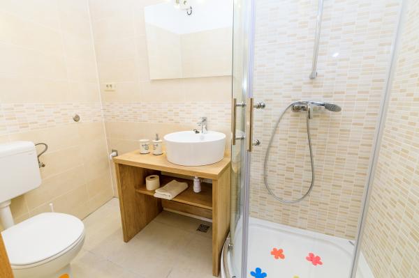 Bardzo fajny obiekt. Ładnie urządzony, bardzo mili właściciele. W apartamencie bardzo czysto. Dość przestronna łazienka i wygodny, duży taras z widokiem na morze. Bardzo dobra lokalizacja, blisko do sklepu, do morza, blisko do promenady w Brela i Baśkiej Vodzie, gdzie są liczne kafejki, bary i miejsca. Jesteśmy bardzo zadowoleni z naszego pobytu i polecam to jako fantastyczne miejsce.