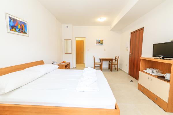 Czytaj więcej KwaterZaliczka: 30%. Dostawka (za osobę): Poza sezonem: 10 EUR/noc. Od 1 lipca do 31 sierpnia: 15 EUR/noc. Dla dzieci do 7 lat: 50% zniżki na dodatkowe łóżko. Czas przyjazdu: od 14:00 Czas wyjazdu: do 10:00.