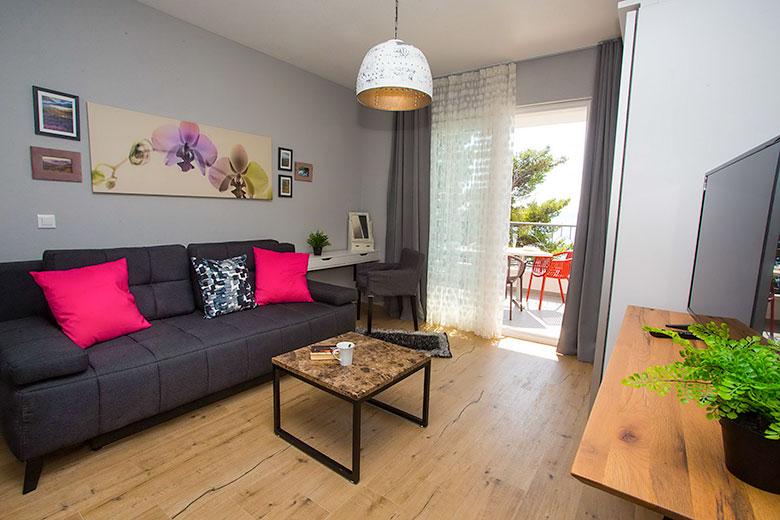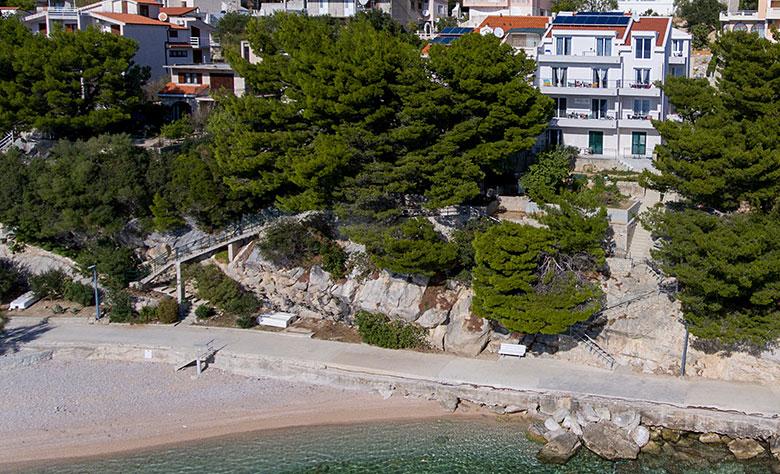 Willa położona jest bezpośrednio nad błękitnym morzem i piękną kamienistą plażą. Z dala od ruchu ulicznego i typowego letniego zgiełku, jest to idealne miejsce na spokojne i przyjemne wakacje. Proste i nowoczesne apartamenty oferują wszystko, czego potrzebujesz.