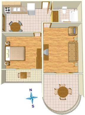 Apartament dla dwóch osób z dwoma dostawkami (46 m2)